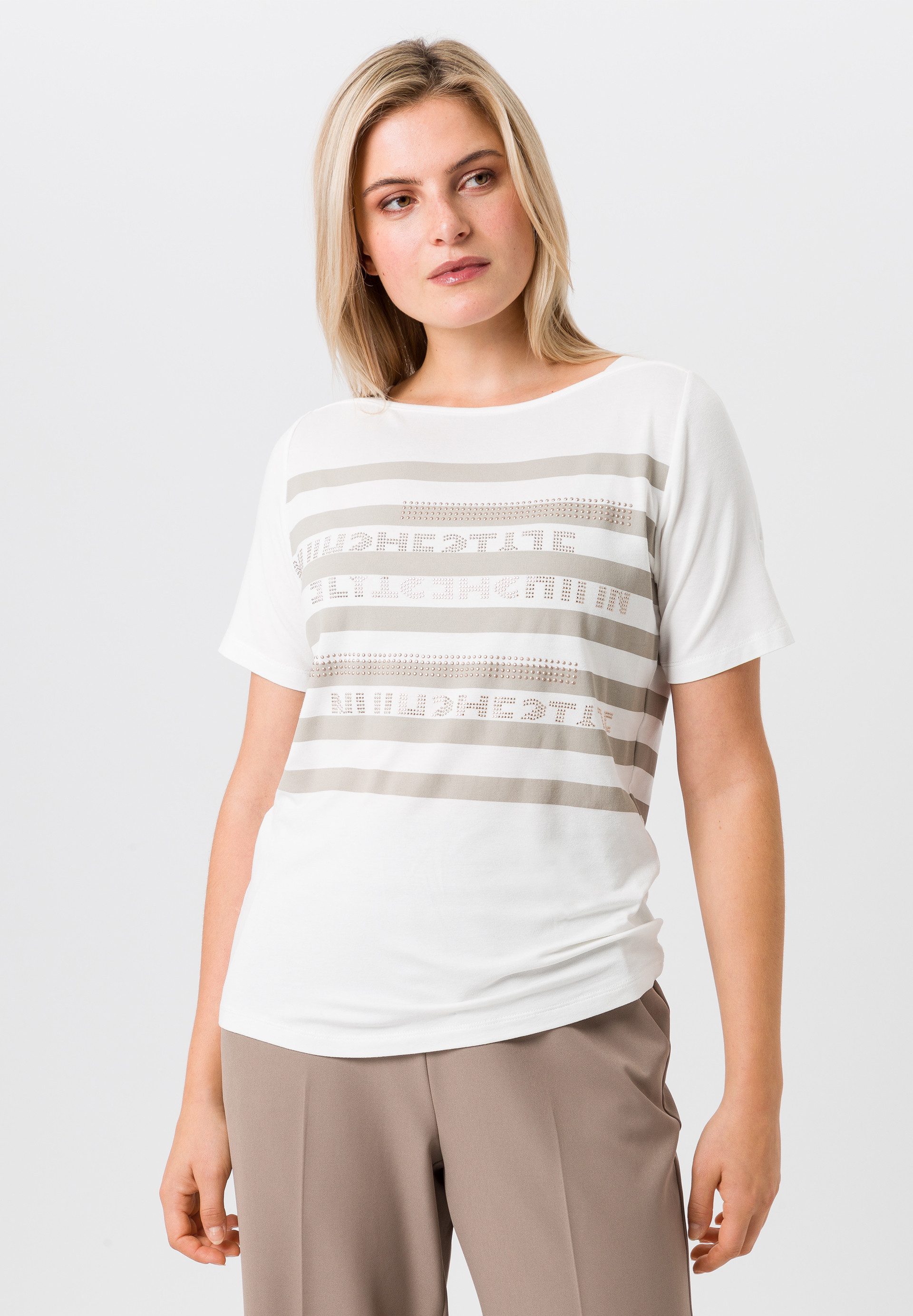 Lässiges Shirt mit modernen Streifen und funkelndem Detail. Der lockere Schnitt sorgt für hohen Tragekomfort, ideal für entspannte Looks.