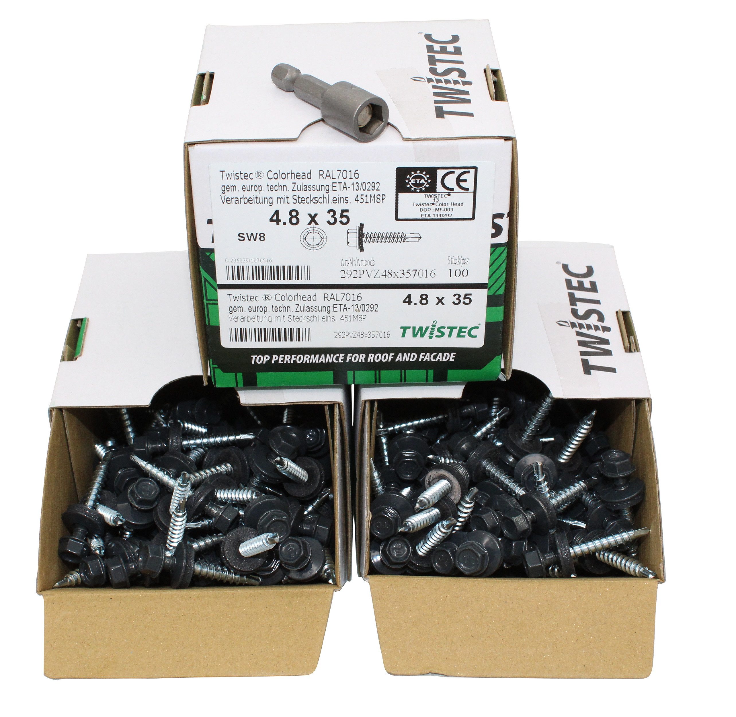 Material | anthrazitgrau - 4,8x35 mm, 300 Stück, inkl. Steckschlüssel SW8+ |