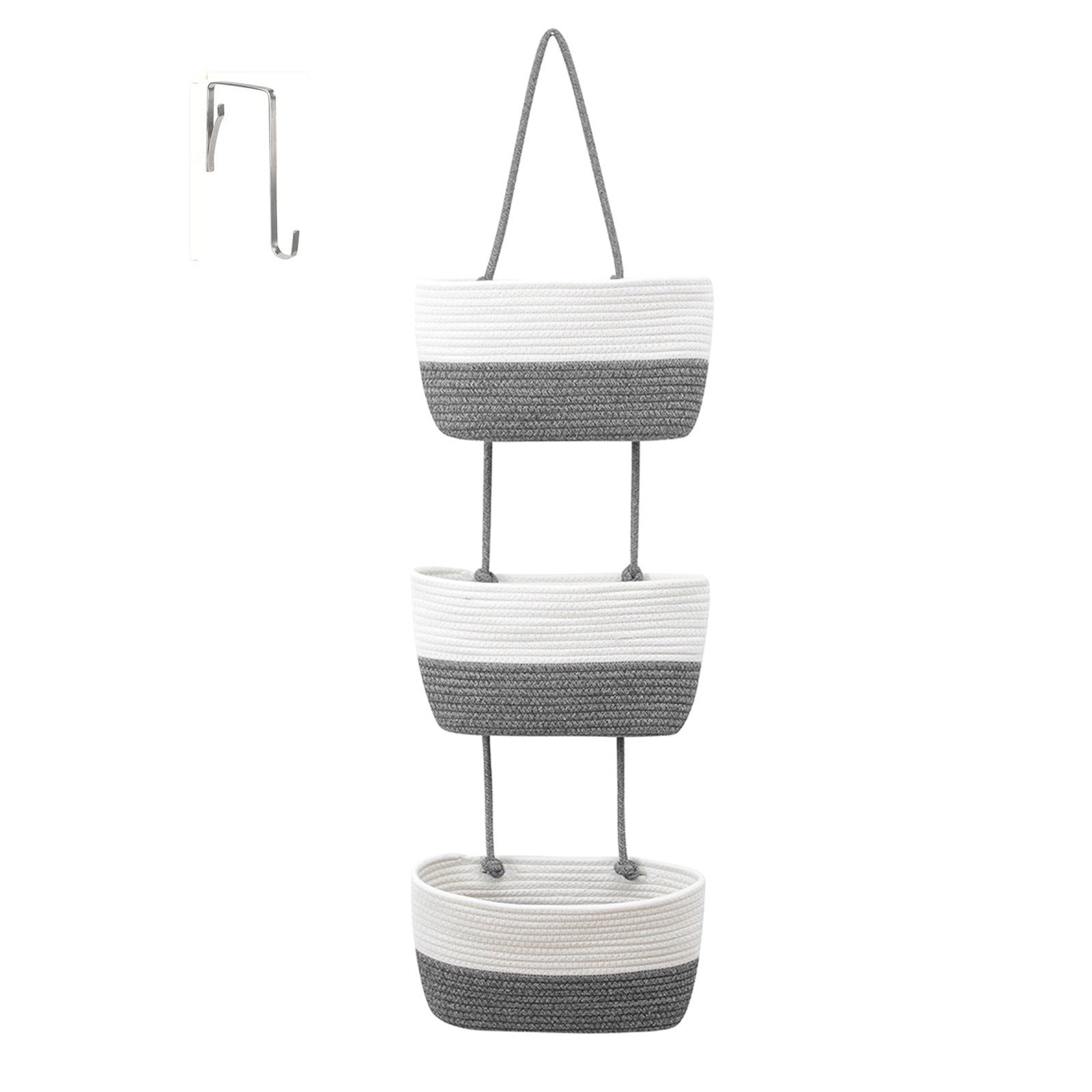 Wandkorb aus 3-lagigem Baumwollseil geflochten (Leinen mit Haken)