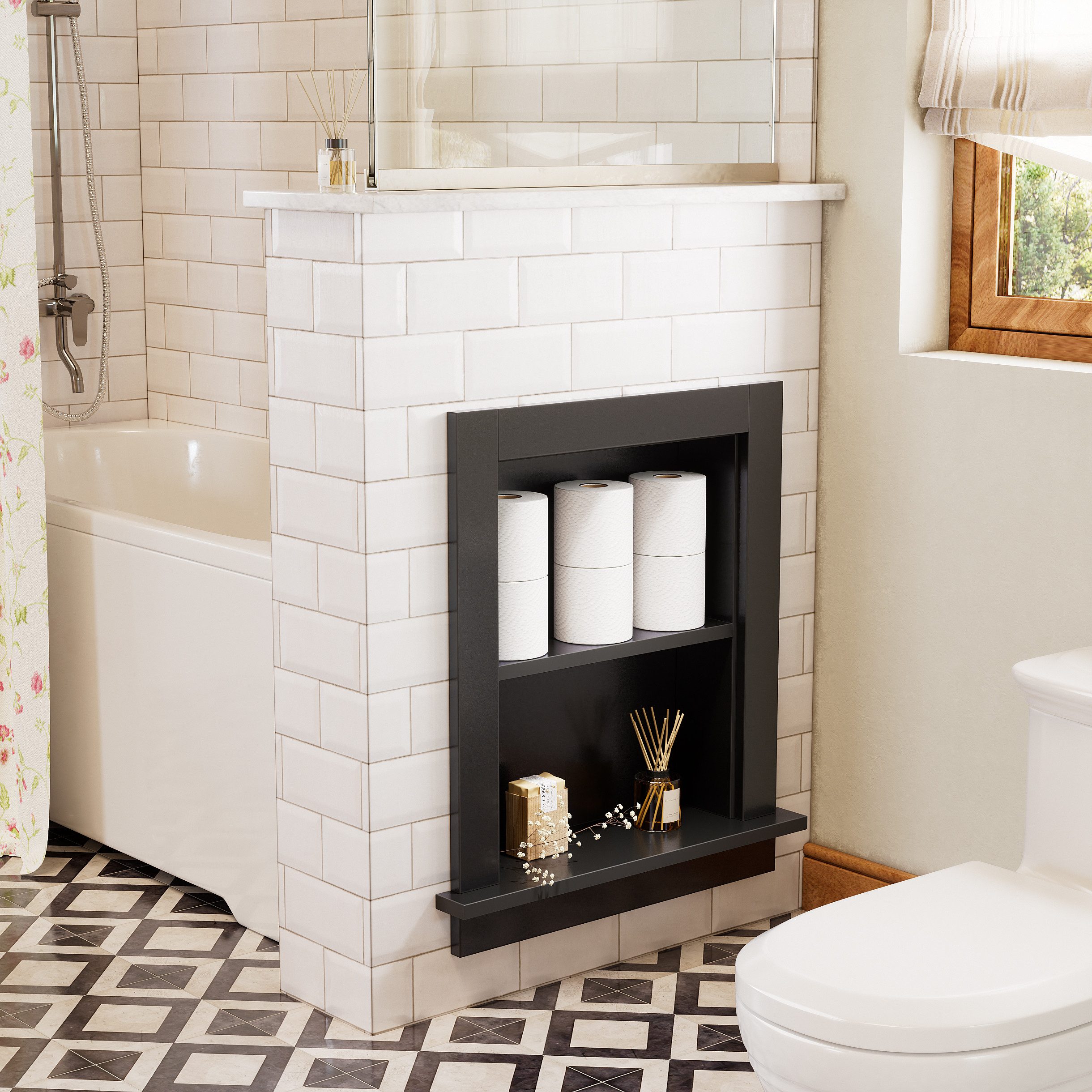 Verleihen Sie Ihrer Dusche eine stilvolle und funktionale Note mit der Wandnische in elegantem Schwarz. Diese Nische aus hochwertigem MDF vereint Ästhetik und Praktikabilität und verwandelt Ihr Badezimmer in eine Wohlfühloase. Einfach in die Wandöffnung einsetzen. Spart Zeit und Kosten im Vergleich zu gefliesten Lösungen.