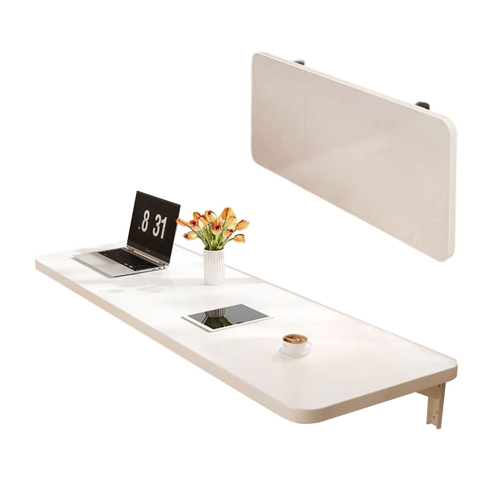 Design: Klappbarer Tisch, zusammenklappbar, um ihn zu verstauen. Falten Sie sich mit einem einfachen Fingerspitzen-Entriegelungsmechanismus an die Wand.