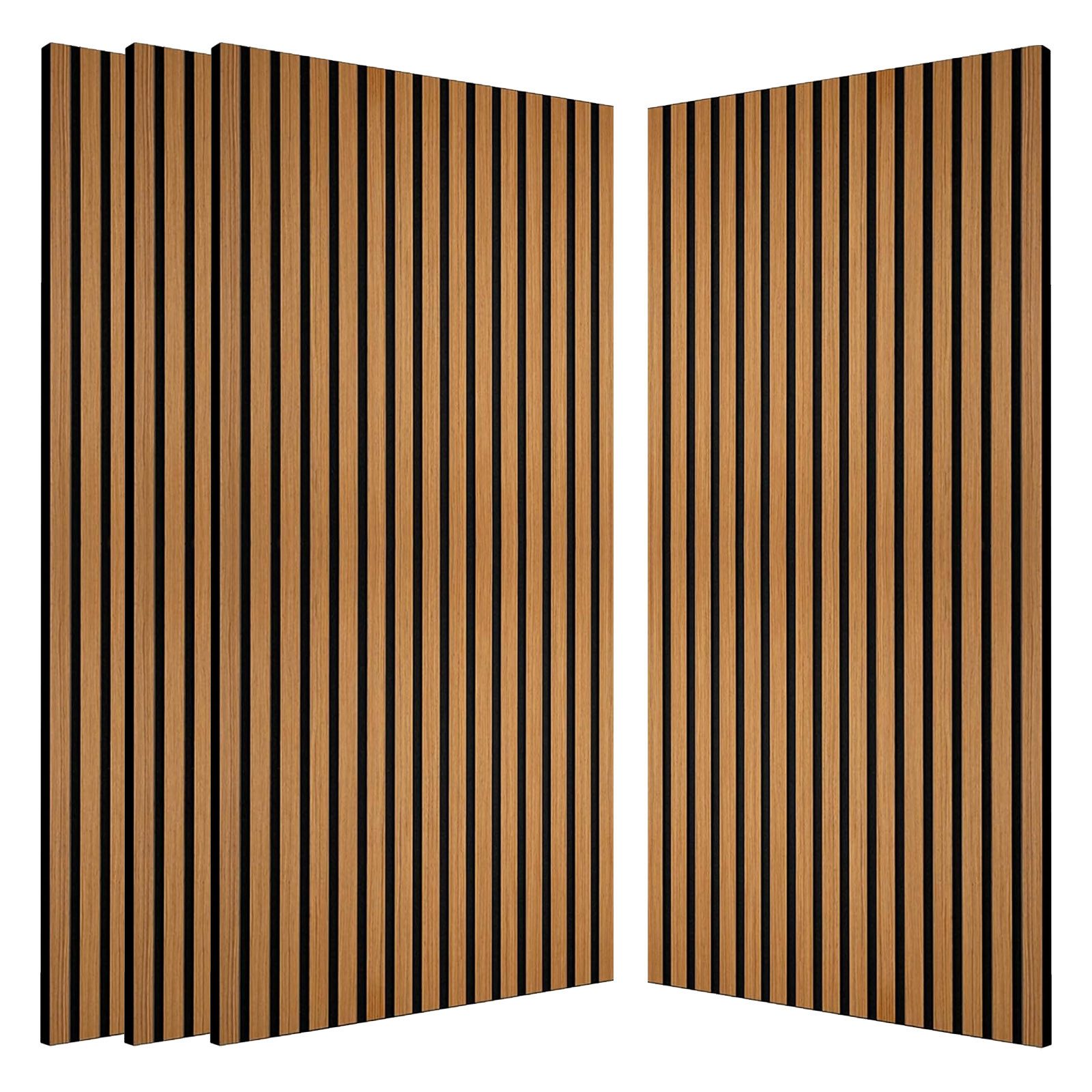Unser Akustikpaneel-Set im 4er-Set verschönert Ihren Raum nicht nur, sondern beeindruckt auch. Jedes Wandpaneel misst 120 x 60 cm und besteht aus schallabsorbierendem Polyesterfilz und 10 mm dicken Holzlamellen, auf der Rückseite mit mitteldichter Faserplatte (MDF). Die präzise Materialdichte von bis zu 0,903 g/cm³ reduziert Lärm deutlich und minimiert störende Echos. Die Montage ist dank der selbstklebenden Rückseite kinderleicht. Ob im Wohnzimmer, Schlafzimmer, Heimkino oder Studio – diese modernen Akustikstreifen bieten nicht nur hervorragende Schallabsorption, sondern sind auch ein Blickfang. Die elegante Holzoptik fügt sich harmonisch in jeden Raumstil ein und schafft eine warme und angenehme Atmosphäre.