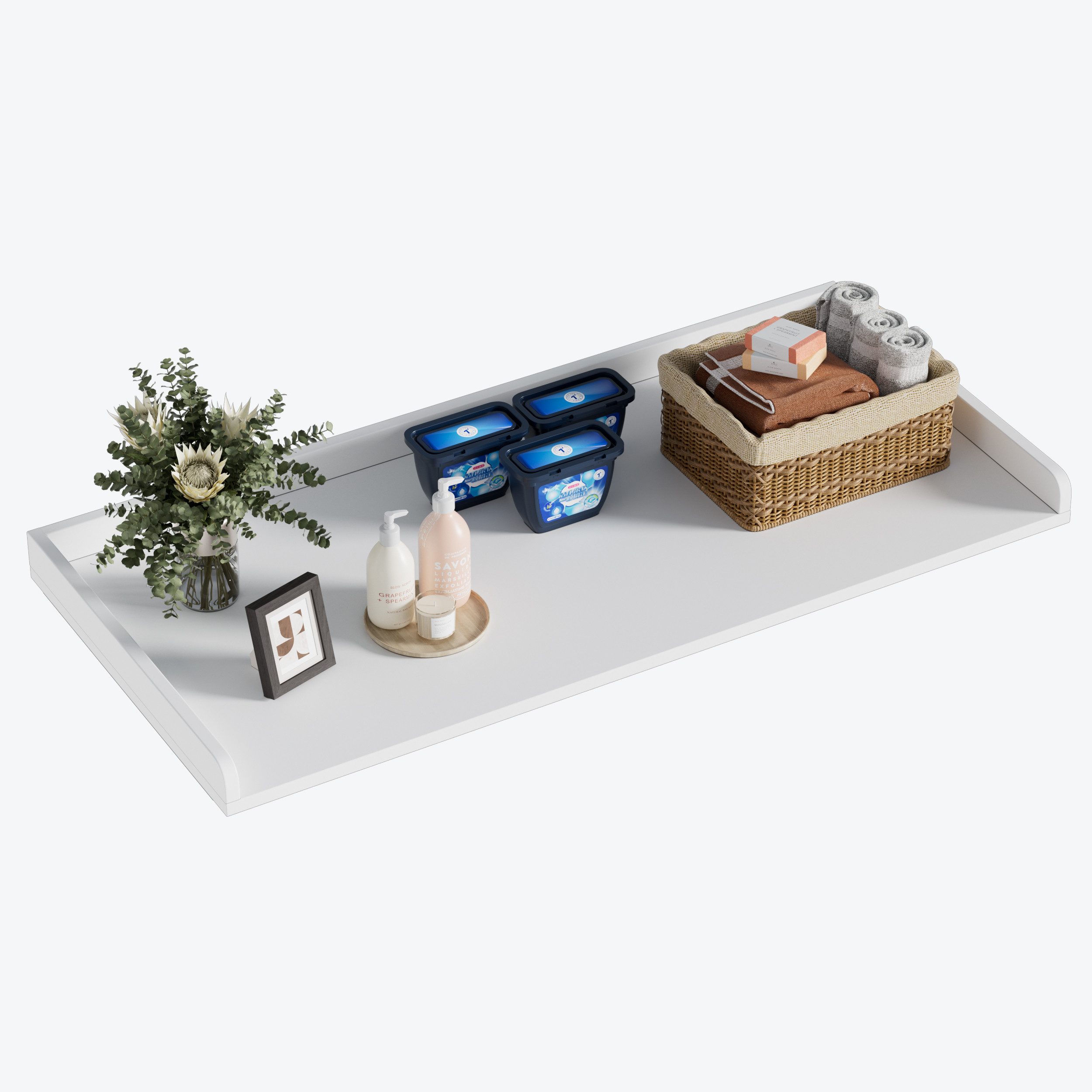 Schaffen Sie zusätzlichen Platz in Ihrer Waschküche! Unsere praktische Arbeitsplatte verwandelt den Bereich über Ihrer Waschmaschine oder Ihrem Trockner in eine nützliche Ablage- und Arbeitsfläche. Ob zum Falten, Bügeln oder zum Abstellen von Waschmitteln – die große Fläche bietet Ihnen Ordnung und Komfort im Alltag.