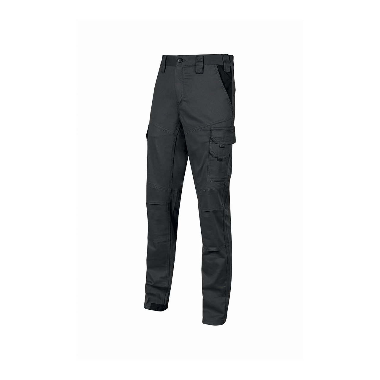 Arbeitshose aus Stretch - Baumwolle gefertigt. Ausgestattet mit zwei großen multifunktionalen Taschen an der Seite, zwei Fronttaschen und einer Gesäßtasche.