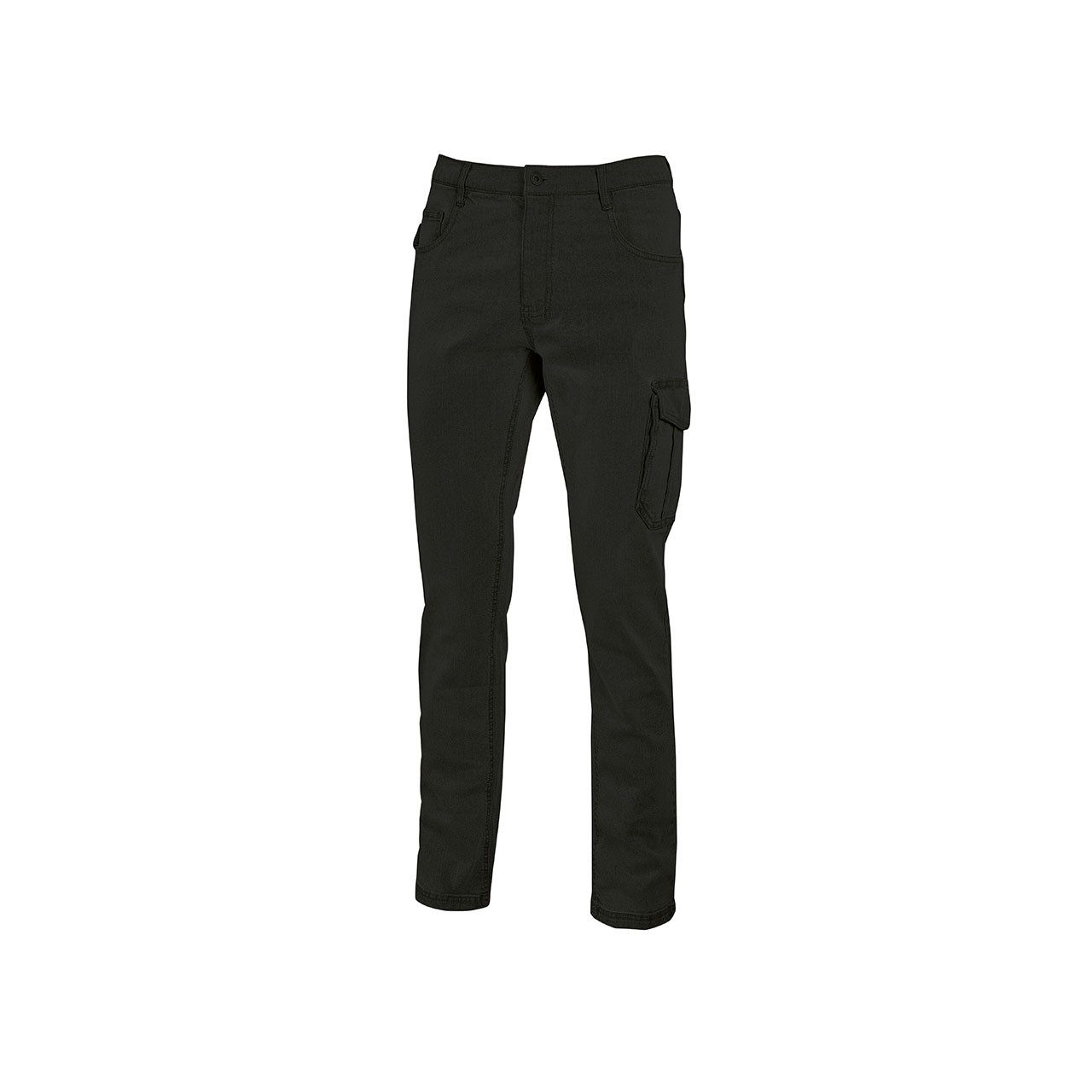 Stretch-Jeans mit 2 großen Schubtaschen, einer Seitentasche mit Patte, Hammerschlaufe & Zollstocktasche.