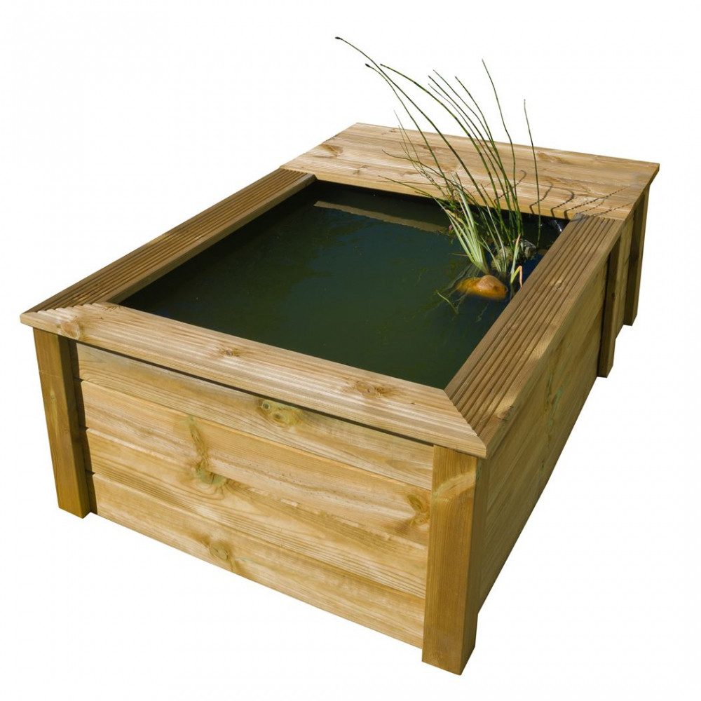 Set Quadro Wood III - kesseldruckimprägnierte Holzumrandung Mit verdeckter Filterkammer für einen kleinen Teichfilter, der Fischbesatz ermöglicht. Set aus nordischem Fichtenholz (Stärke der Planken: 28 mm), kesseldruckimprägniert Klasse IV, genutet und PVC-Folie mit einer Stärke von 0,5 mm nach Maß (3D), die am Rand der Holzwand des Teiches anzubringen ist. Dieses Set umfasst das Zierbecken getrennt vom Filterkasten, der mit einer abnehmbaren Abdeckplatte geschlossen wird.