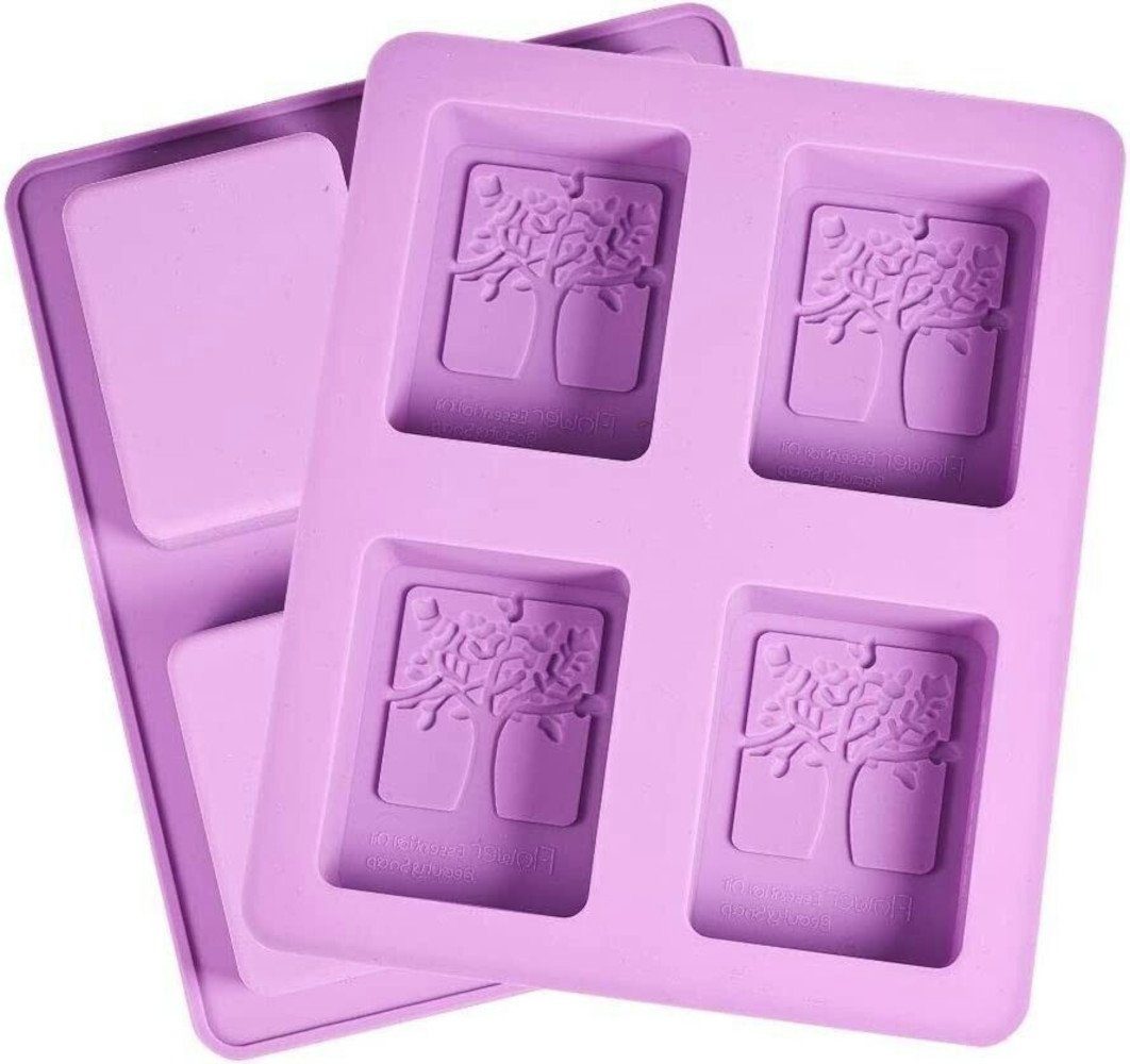 Silikon Seifenformen-Set: Das WANDIC Silikon Seifenform Set beinhaltet 2 rechteckige Formen mit Blumenbaum und Lebensbaum-Motiven, ideal für Harzprojekte.
