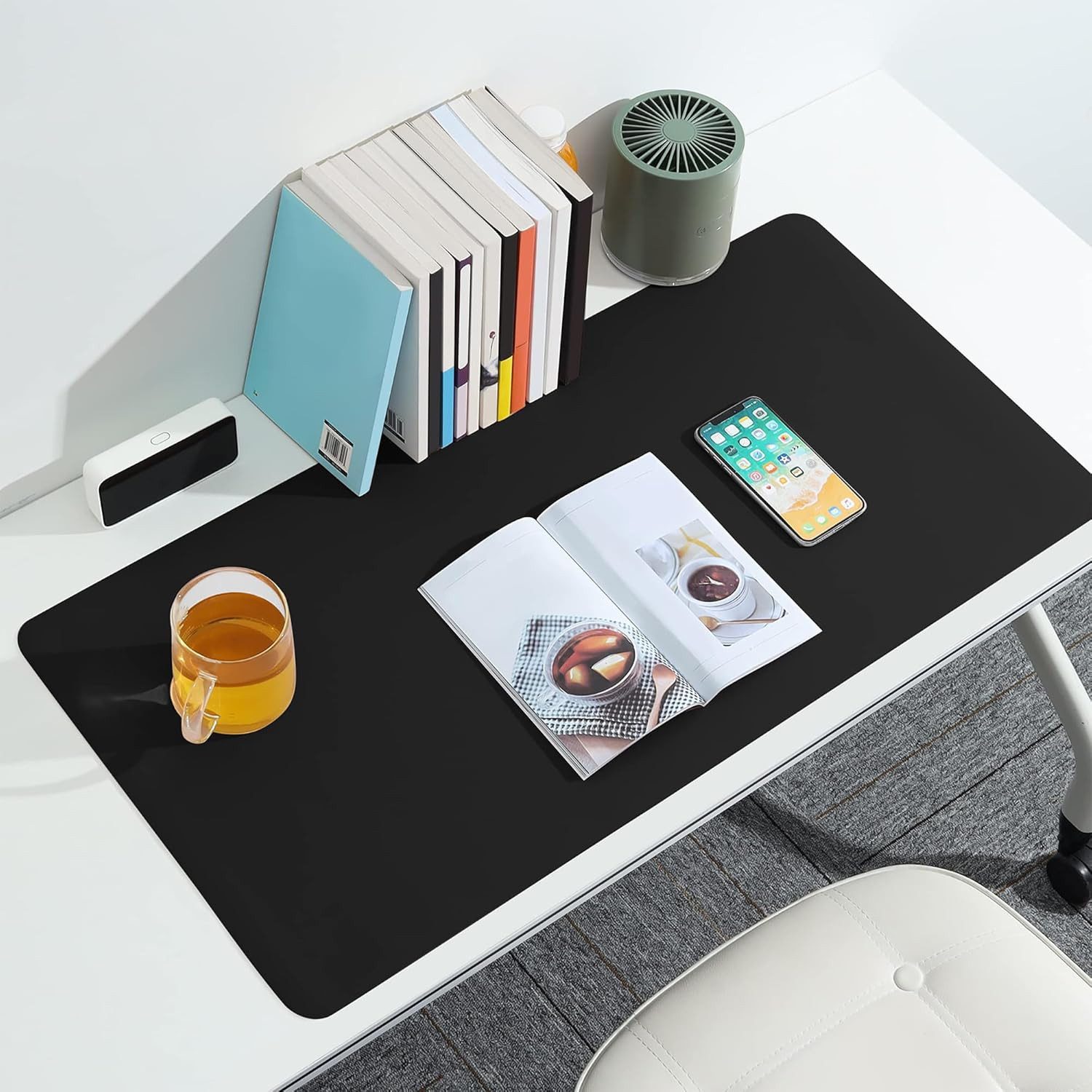 Das verwendete Kunstleder ist nicht nur geschmackvoll, sondern auch umweltfreundlich und geruchsneutral. Die Oberfläche dient nicht nur als Mauspad, sondern bietet auch eine bequeme Ablagefläche für Ihre Hände beim Schreiben, Tippen oder Arbeiten mit der Maus. Verleihen Sie Ihrem Arbeitsplatz einen Hauch von Eleganz!