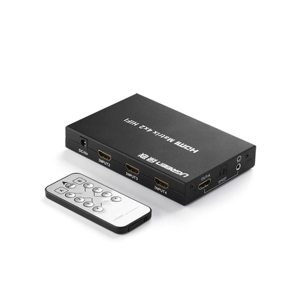 Ugreen Splitter 4x HDMI (Eingang) auf 2x HDMI (Ausgang) Splitter Schalter 4K / FullHD schwarz ( 40216 )