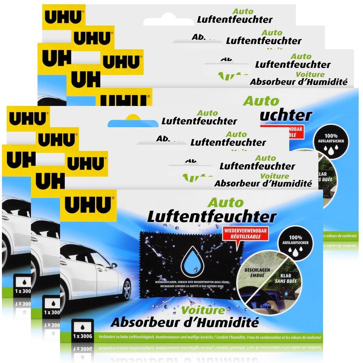 Einfache Anwendung und effektiver Schutz vor FeuchtigkeitDer UHU Auto Luftentfeuchter ist genau das Richtige Mittel gegen Kondenswasser und schlechte Gerüche im Inneren Ihres Fahrzeugs. überschüssige Flüssigkeit wird ganz einfach aus der Luft heraus absorbiert und Feuchtigkeitsschäden werden verhindert, noch bevor sie überhaupt entstehen können. Der UHU Auto Luftentfeuchter sorgt dafür, dass das Autofahren wieder mehr Spaß macht, denn nur saubere Luft ist angenehme Luft. Auch Keimentwicklungen werden durch das praktische Produkt zuverlässig verhindert. Das Produkt ist für Autos, Wohnwagen und Boote geeignet.