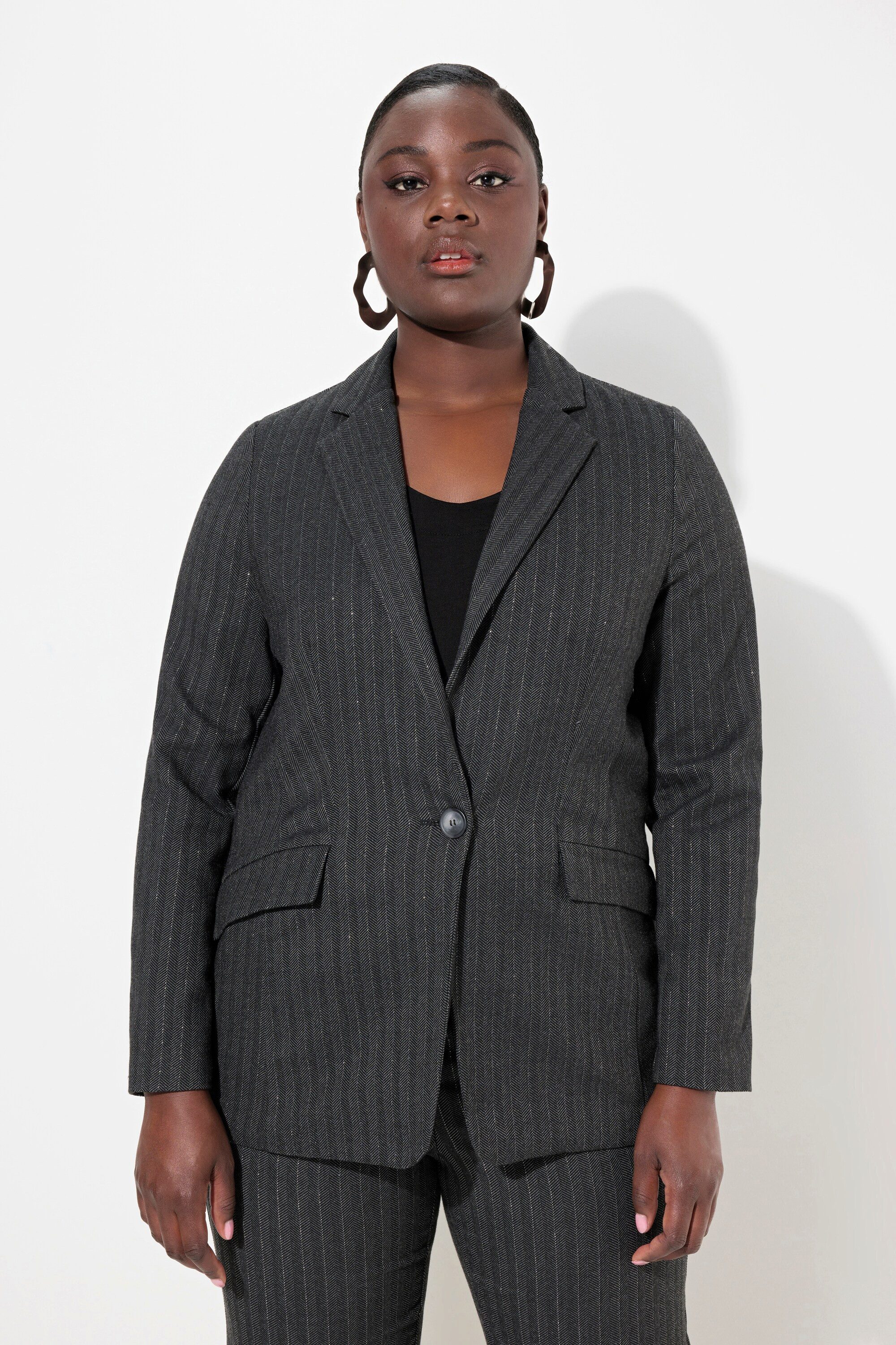 Materialzusammensetzung | Oberstoff: 64% Polyester, 33% Viskose, 2% Elasthan, 1% Metallisierte Fasern. Futterstoff: 100% Polyester |