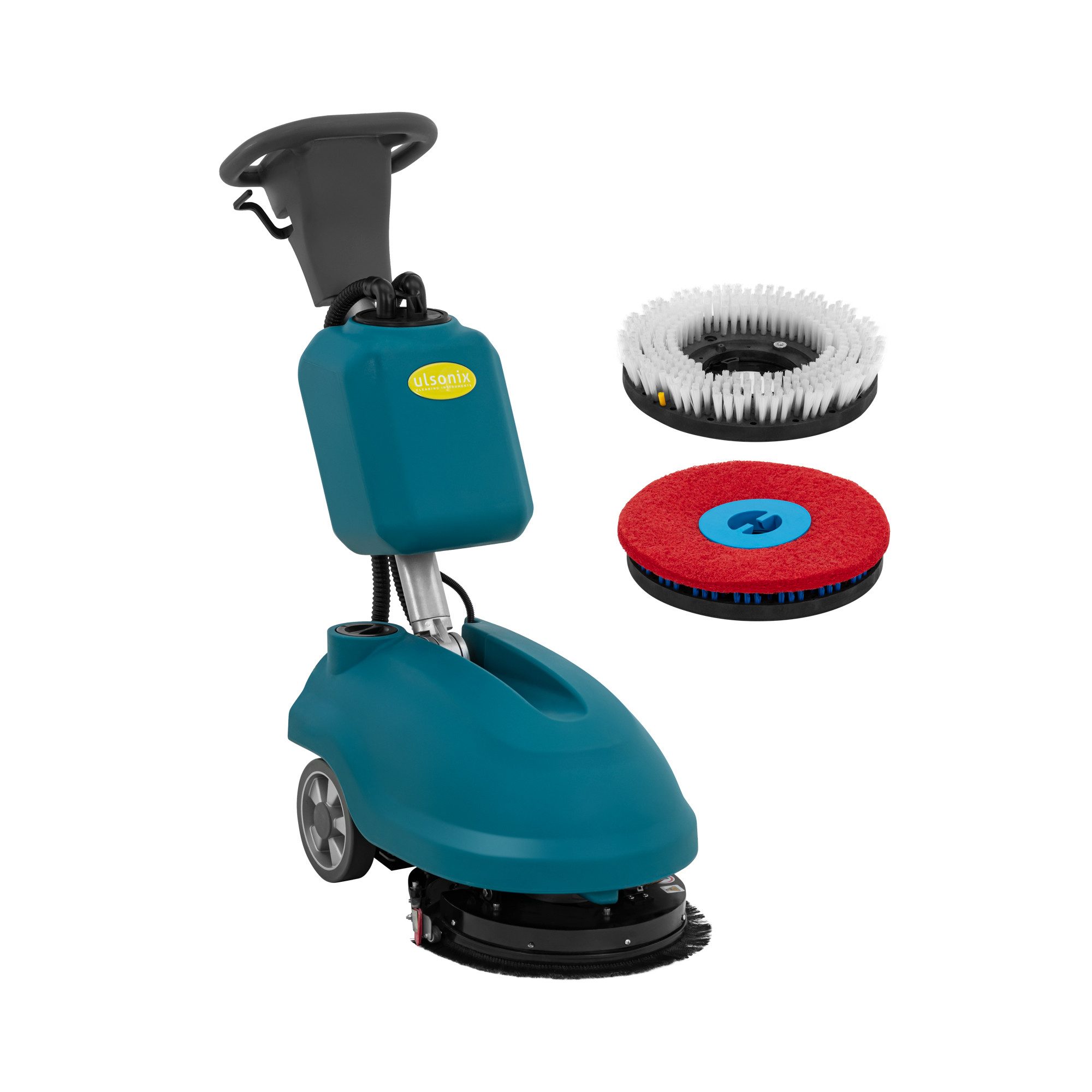 Zum schnellen Aufwischen reicht der Wischmopp, für große Flächen ist dagegen die Scheuersaugmaschine von ulsonix erste Wahl. Nutzen Sie ihre Reinigungskraft für beanspruchte Böden im Supermarkt oder in Lagerhallen. Oder sorgen Sie für überzeugenden Glanz auf großen Flächen in Autohäusern oder Museen. Die Akku-Scheuersaugmaschine überzeugt durch eine hohe Gesamtleistung. Mit 400 W bringen Sie die 35 cm breite Bürste auf eine Geschwindigkeit von 160 U/min und lösen mit einem Bürstendruck von 32 kg effektiv Verschmutzungen. Die 58 cm messende Sauglippe entfernt anschließend mit einer Leistung von 550 W das schmutzige Wasser. Mit diesen fein aufeinander abgestimmten Leistungswerten reinigen Sie Flächen von bis zu 1500 m²/h.