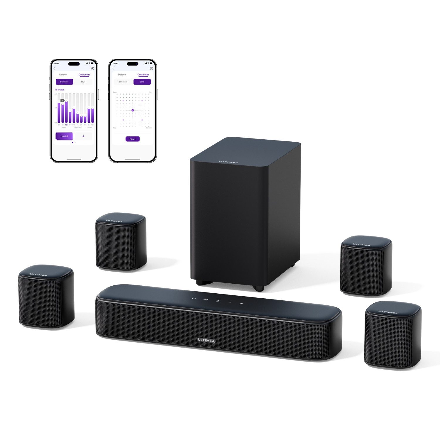 Lieferumfang | 1 × Soundbar; 1 × Subwoofer; 4 × Surround-Lautsprecher; 1 × Soundbar-Netzteil; 1 × Surroundboxen-Netzteil; 1 × Surround-Kabel (6m); 1 × Optisches Digitalkabel; 1 × Vorderer linker Surround-Kabel(2m) 1 × Vorderer rechter Surround-Kabel (2m) 1 × Benutzerhandbuch; 1 × Fernbedienung (Batterien nicht enthalten); 12 × Wandmontagesatz; 6 × Wandhalterung; 6 × Befestigungsschrauben der Lautsprecher; |