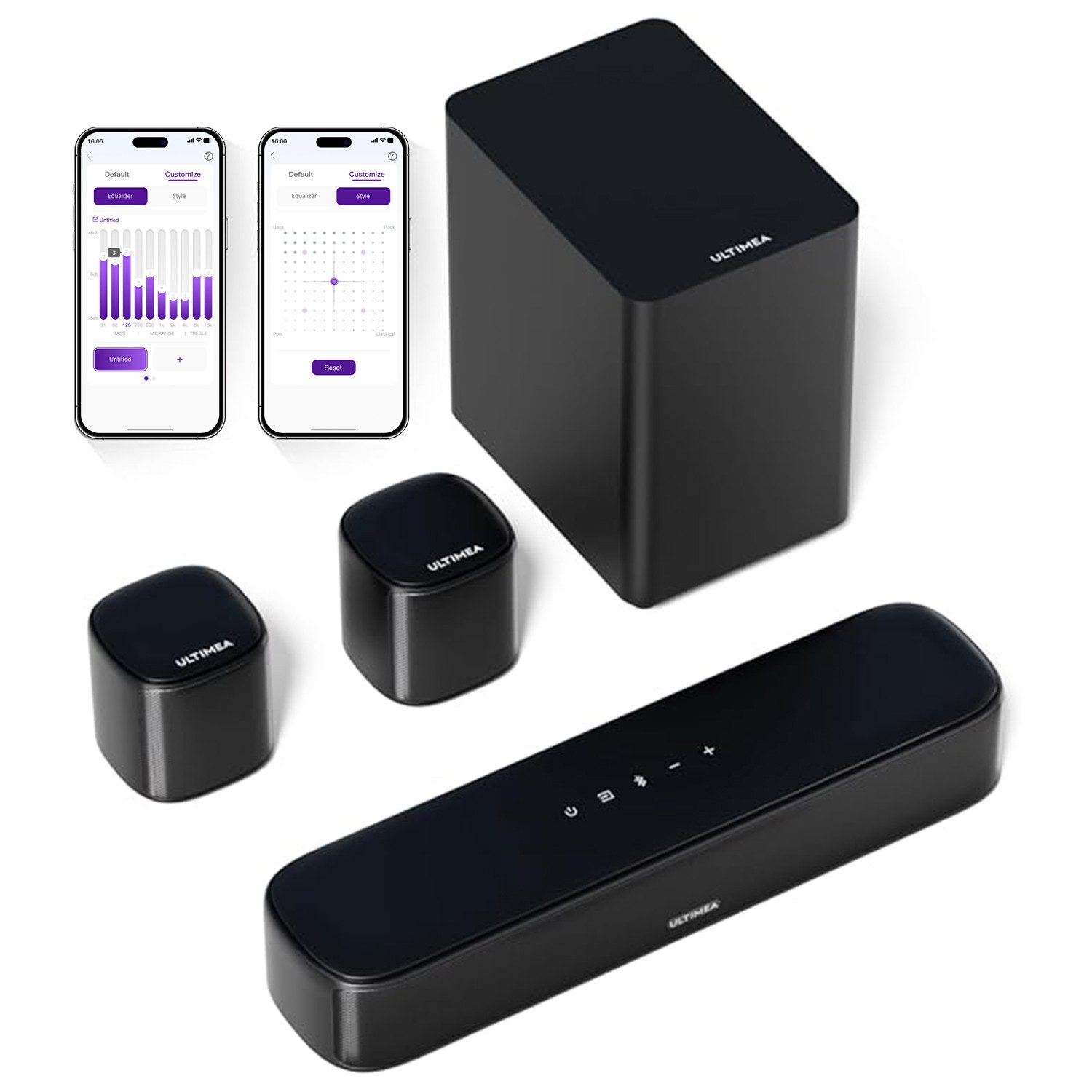 Lieferumfang | 1 × Soundbar; 1 × Subwoofer; 2 × Surround-Lautsprecher; 1 × Soundbar-Netzteil; 1 × Surroundboxen-Netzteil; 1 × Surround-Kabel (6m); 1 × Optisches Digitalkabel; 1 × Benutzerhandbuch; 1 × Fernbedienung (Batterien nicht enthalten); 8 × Wandmontagesatz; 4 × Wandhalterung; 4 × Befestigungsschrauben der Lautsprecher; |