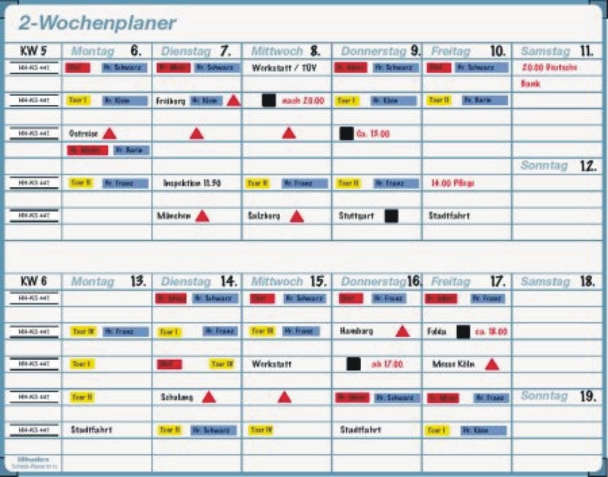 Wandtafel 2-Wochen-Planer 1120x880mm Einzelfeld 163x29mm