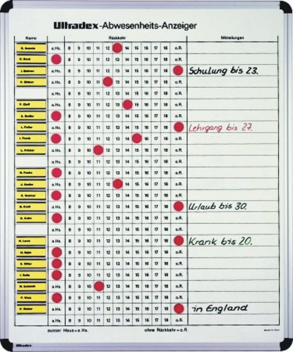 Ultradex Wandtafel Abwesenheitstafel 610x730mm maximal 25 Personen