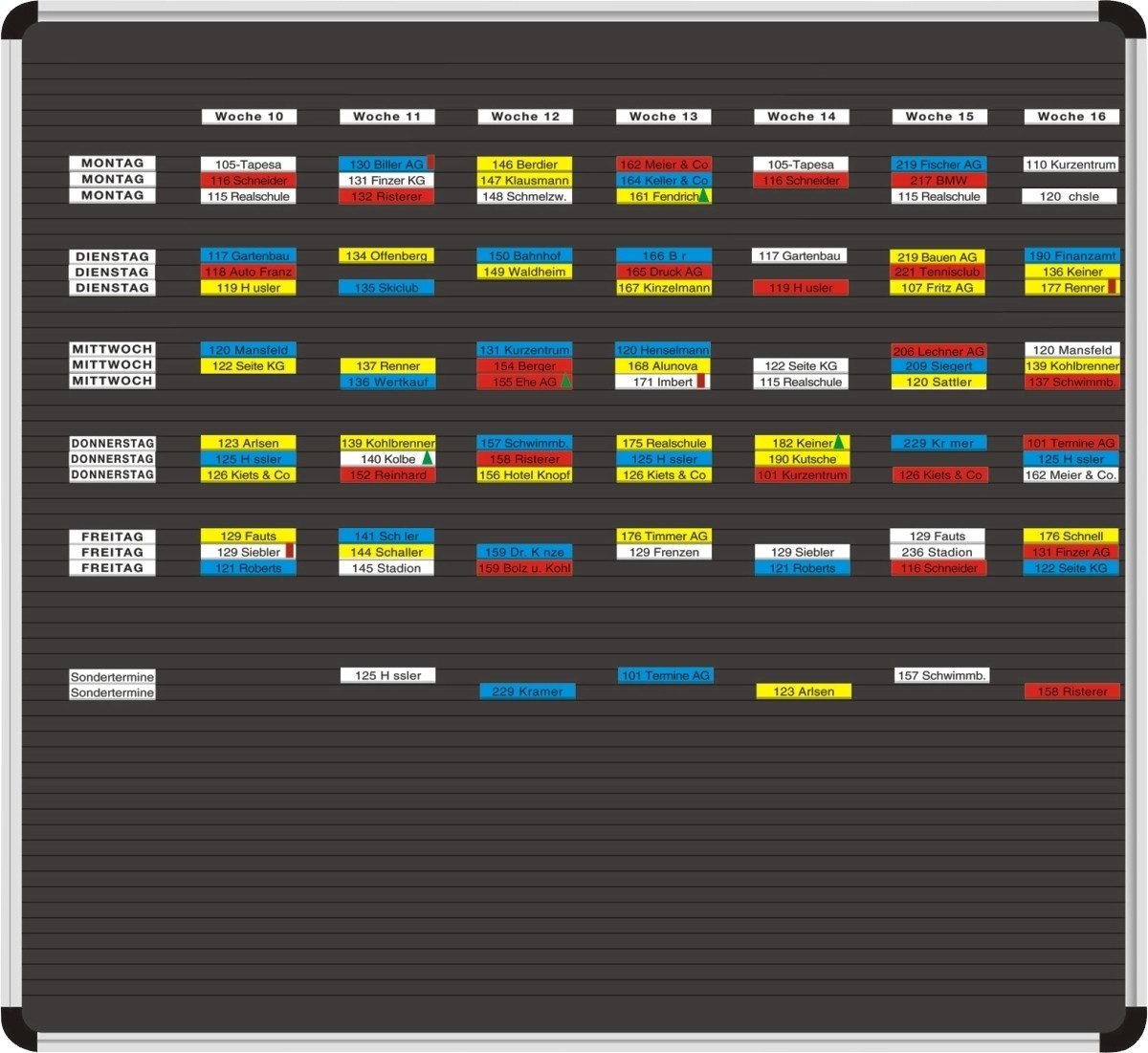 • Hochwertige Tafel mit waagerechten Steckbahnen, universell für die Planung von Terminen, Aufträgen, Personal usw. einzusetzen