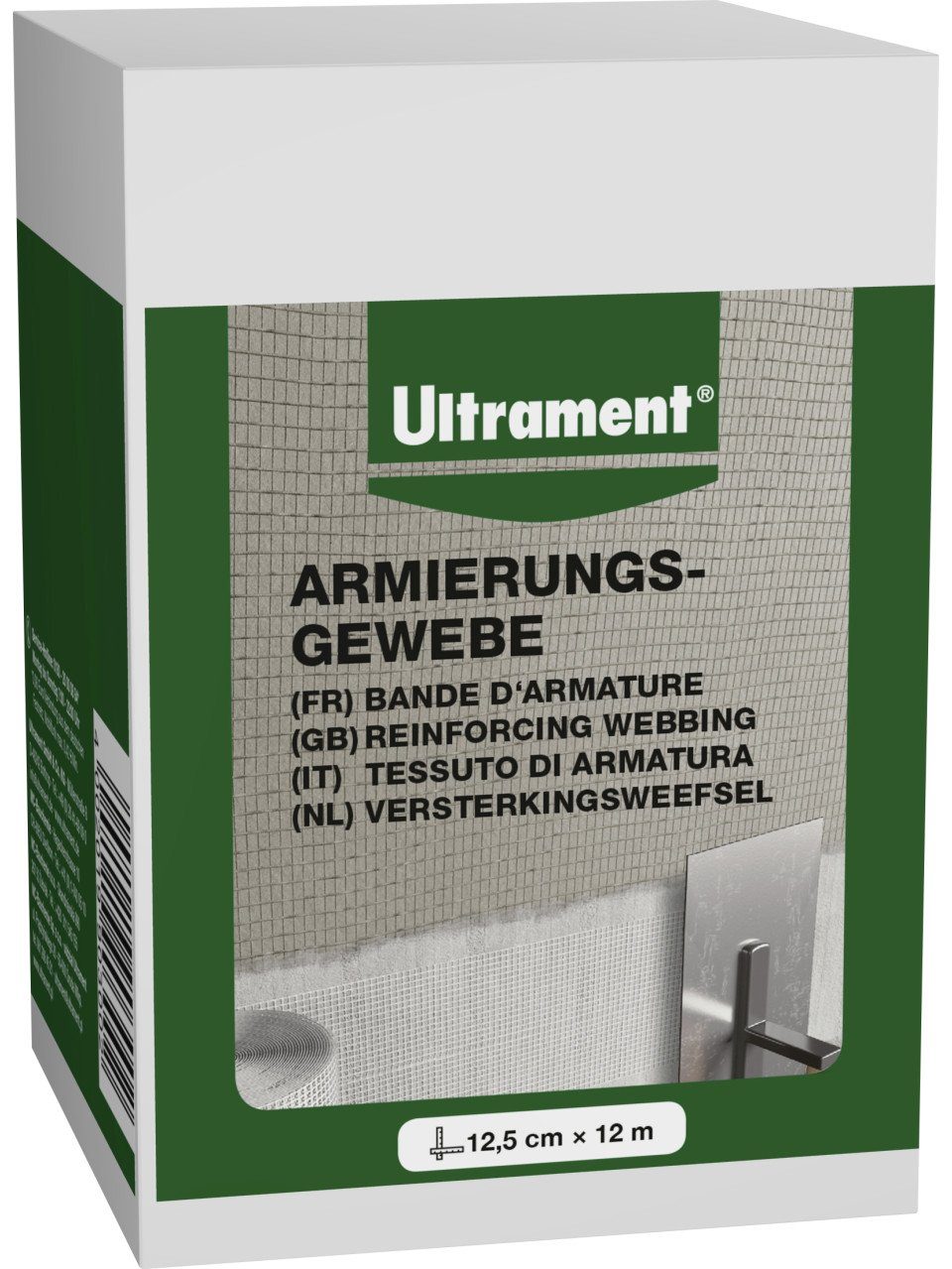 Ultrament Armierungsgewebe ist ein Glasfasergewebe, das im Bereich der Stoßfugen in die erste Lage Putz etc. eingebettet wird und somit die Bildung von späteren Rissen verhindert.