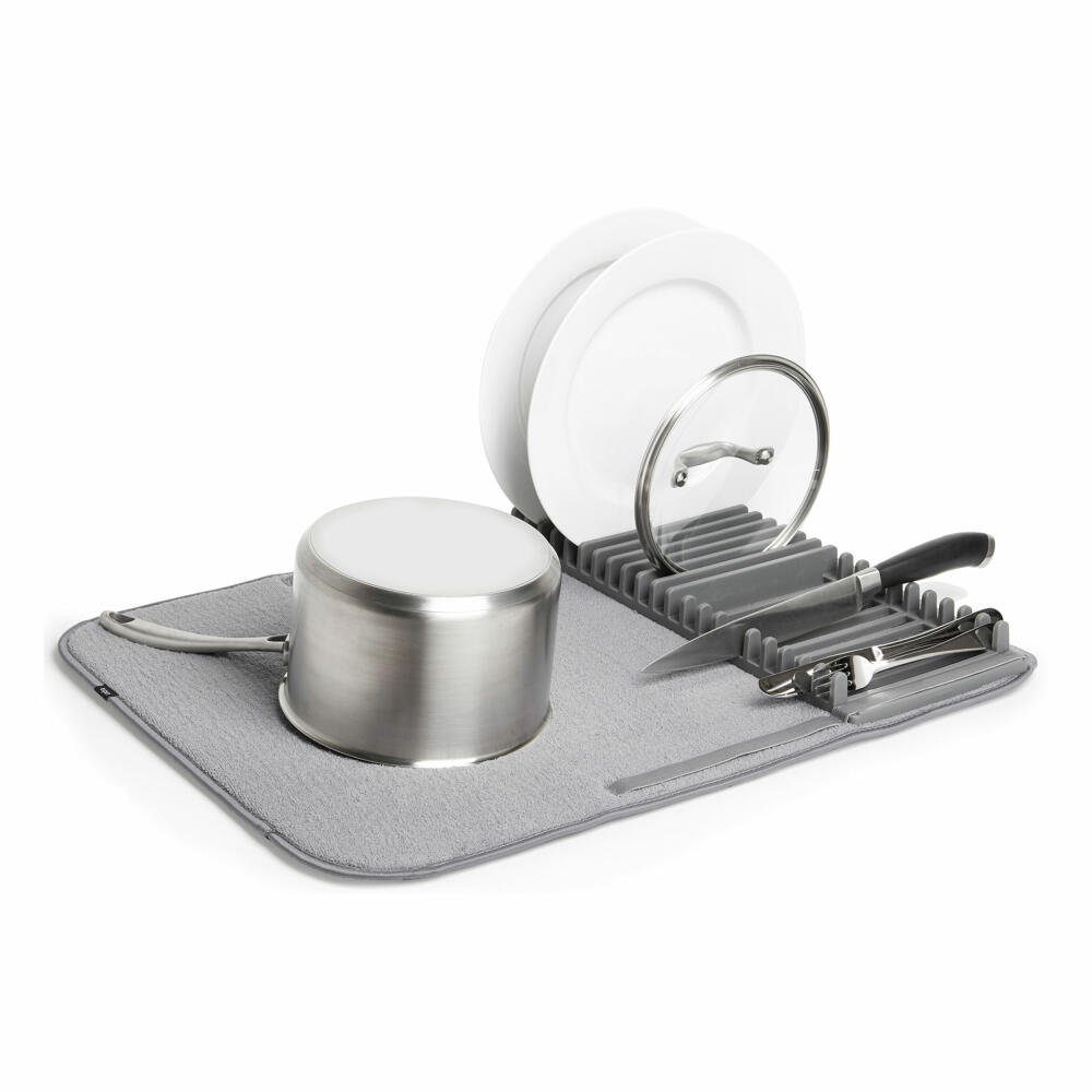 Lieferumfang | 1 Umbra Udry Trockenmatte inkl. Abtropfgestell, Abtropfgitter, Abtropfschale, Polyester, Grau, L 61 cm, 330720-149 |