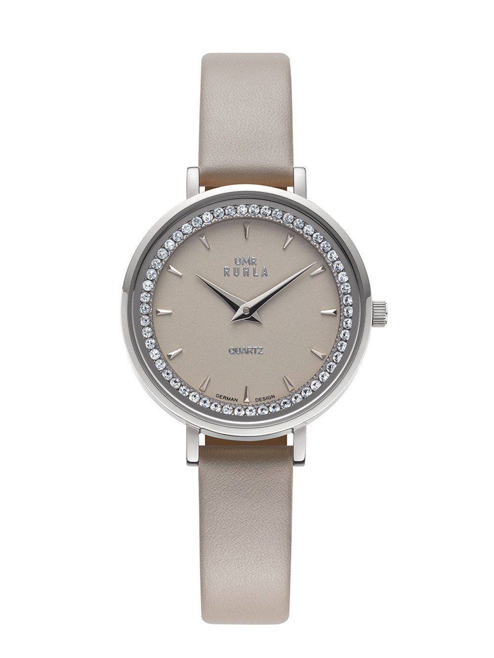 Zifferblatt: taupefarbenes Zifferblatt mit silbernen Indizes mit Swarovskisteinchen innenliegend