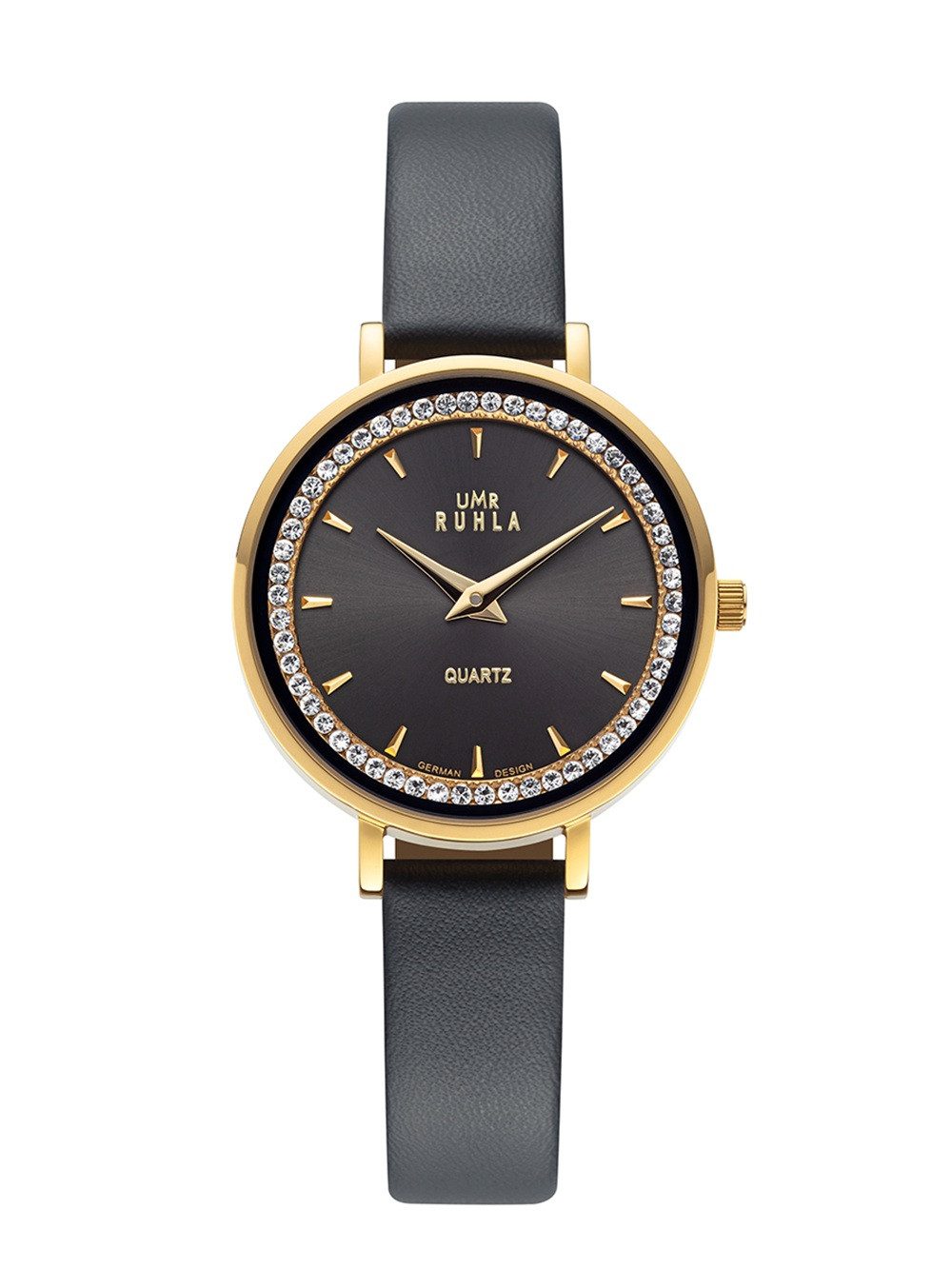 Zifferblatt: dunkelgraues Zifferblatt mit goldenen Indizes mit Swarovskisteinchen innenliegend