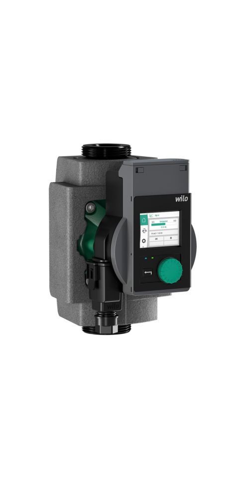 Wartungsfreie Nassläufer-Umwälzpumpe mit Verschraubungsanschluss, blockierstromfester Synchronmotor nach ECM-Technologie (bis zu 90% Energieeinsparung im Vergleich zu einer ungeregelten Pumpe) und integrierter elektronischer Leistungsregelung zur stufenlosen Differenzdruckregelung. Einsetzbar für alle Heizungs- und Klimaanwendungen (+2 °C bis +110 °C). Regelmodus gemäß der Anwendung Radiatoren-/Fußbodenheizung wählbar.