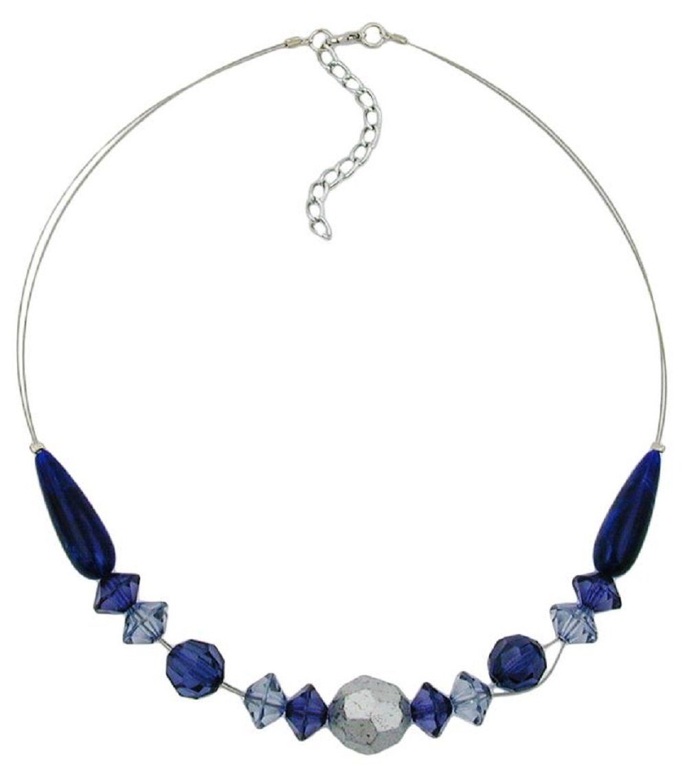 Drahtkette mit Wabenperle Silber-matt Rauchblau Kunststoffperlen 45 cm