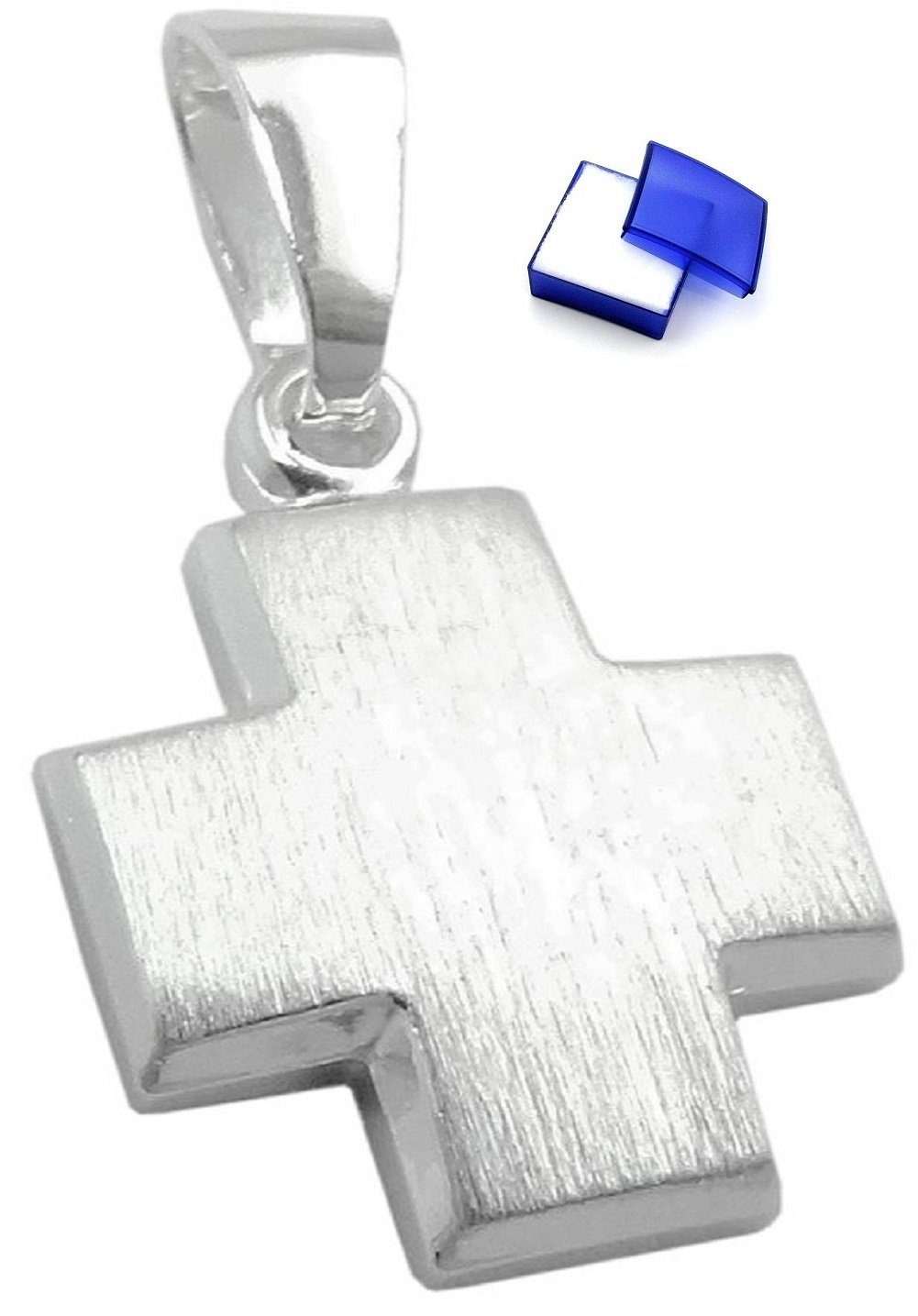 Dieser 11x11mm kleine, massive Kreuzanhänger in Sterling Silber 925 ist das christliche Kreuz in seiner Ursprungsform. Gearbeitet in hochwertiger Juwelierqualität, mattiert mit geraden Kanten, die Rückseite geschlossen (verbödet) und gekörnt (nicht eben), stellt dieses wunderschöne Silberkreuz ein starkes christliches Symbol dar: zwei gleichlange Linien, eine vertikal (waagerecht), eine horizontal (senkrecht) haben ihren Schnittpunkt genau in der Mitte. Ausgehend von der Mitte, der göttlichen Einheit, drängen die 4 Enden (der Welt) zur gleichrangigen göttlichen Entfaltung. Das einfache ur-christliche Ornament vereinigt oben und unten, Himmel und Erde, Gott und den Menschen, Mensch und Mensch, die 4 Himmelsrichtungen Westen und Osten, Nord und Süd, und verkörpert: trotz der Gegensätzlichkeit gibt es einen gemeinsamen Schnittpunkt. Das gleichschenklige Kreuz war früher weit verbreitet und ist heute noch in einigen Nationalflaggen zu sehen (zum Beispiel Schweiz). Ein dezenter und gleichzeitig schmückender Hinweis auf das christliche Glaubensbekenntnis. Das perfekte Geschenke für religiöse Anlässe im Christentum.