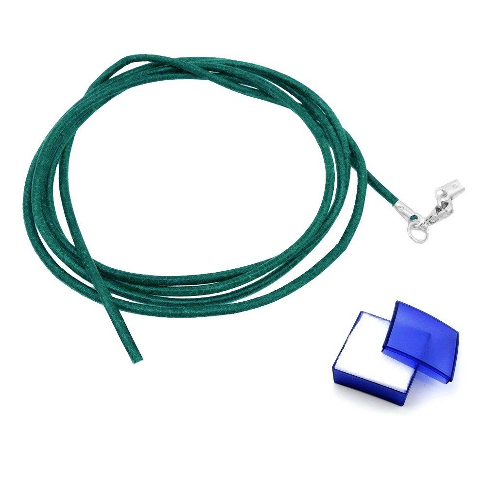 Bestimmen Sie die Длина selbst! Lederband Türkis mit Verschluss silberfarbig-rhodiniert, eine Seite ist offen. Somit kann das Band auf die gewünschte Длина gekürzt werden. Einfach die gewünschte Длина abtrennen und das Endteil schließen. Schnell und unkompliziert! Hinweis! Jeglicher Kontakt mit Feuchtigkeit sollte vermieden werden (Duschen, Sport, Schlafen).