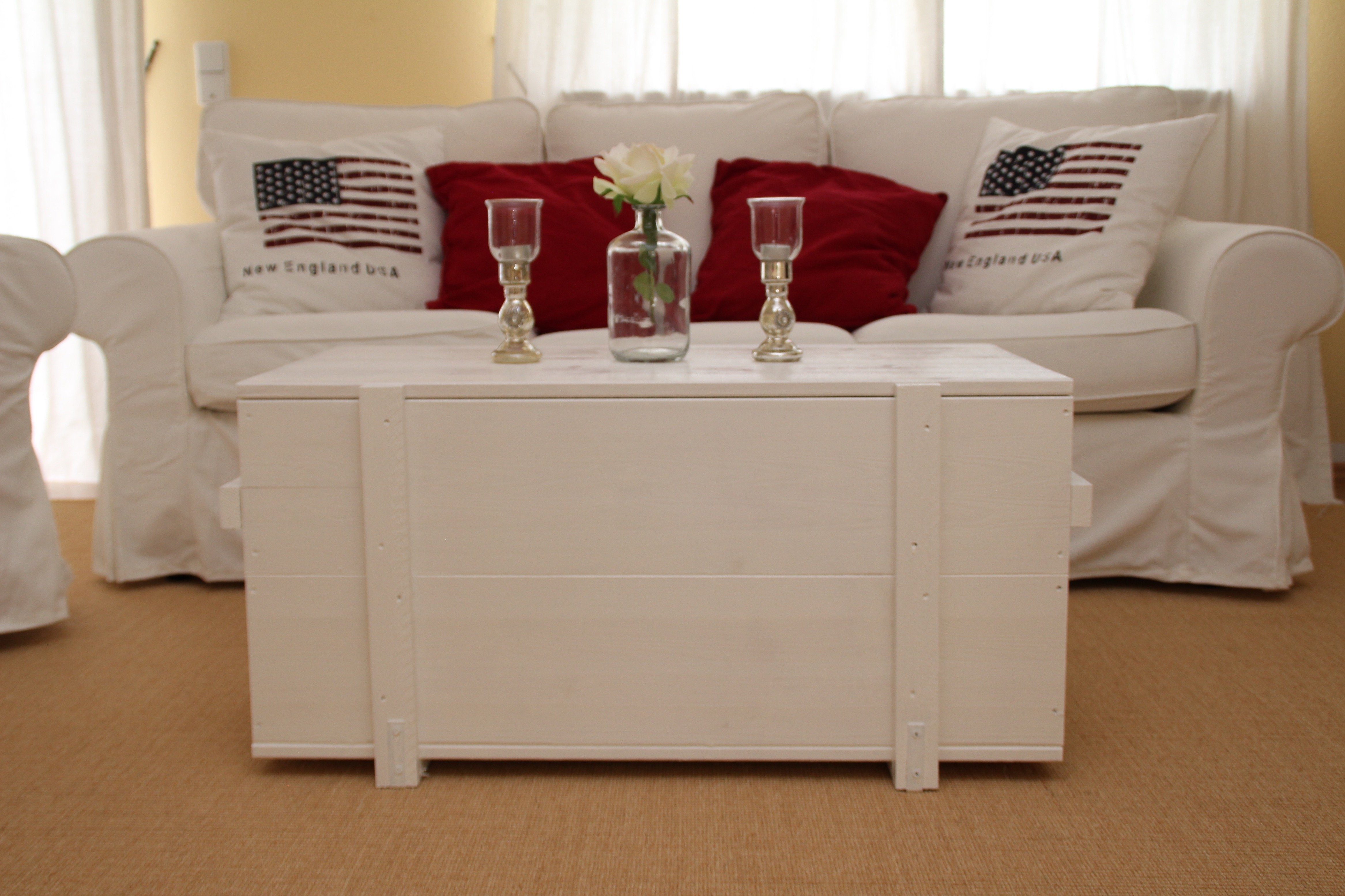 Das Highlight für Ihr Wohnzimmer im besonderen Look! Der stabile Couchtisch von Uncle Joe´s® im Vintage-Design ist ein echter Blickfang. Neben der kreativen Optik besticht die handgefertigte Truhe durch ihre Funktionalität. Der abnehmbare Deckel ist nicht befestigt, wodurch die Truhe leicht geöffnet werden kann. Der Tisch hat einen großen Stauraum, in dem allerlei Dinge ihren Platz finden. Dadurch können Sie den Tisch auch als Truhe nutzen. Die versiegelte Oberfläche bietet zudem Schutz. Daneben besitzt die Truhe Metallbeschläge und zwei seitliche Tragegriffe. Durch die qualitativ hochwertige Verarbeitung bietet der Couchtisch eine Tragkraft von bis zu 100 kg. Dieses außergewöhnlich schöne Stück wird aus Massivholz in Handarbeit hergestellt. Wir fertigen ausschließlich in Deutschland aus heimischen Hölzern und tragen damit dem Gedanken der Эко-товары umfassend Rechnung. Wir verwenden ausschließlich Farben auf Wasserbasis und verzichten damit auf jegliche Lösemittel. Der Truhentisch wird fertig montiert geliefert.