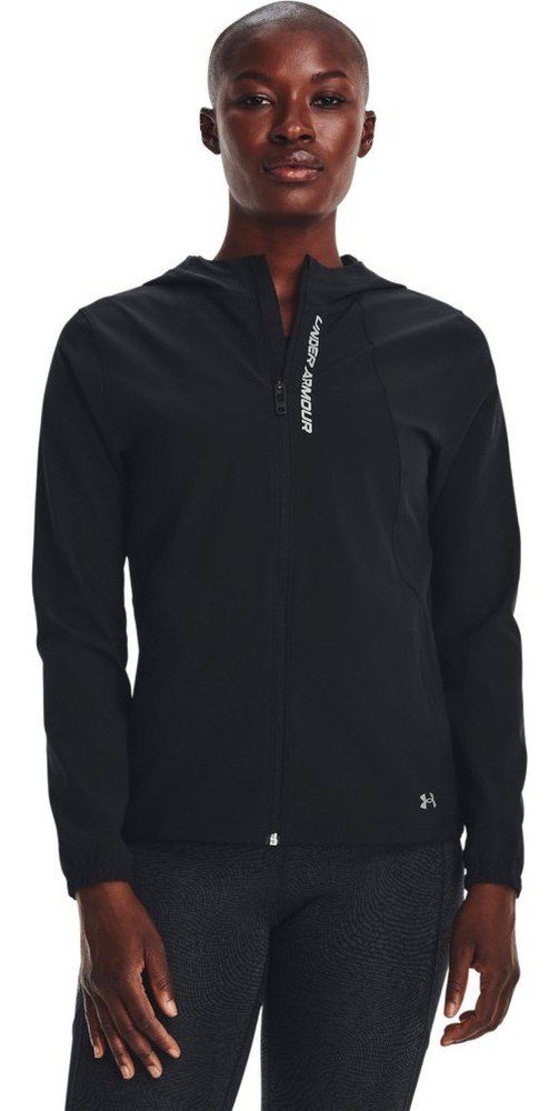 Under Armour Damen Regenjacke OutRun the Storm Jacket. Die UA Outrun The Storm-Serie ist nicht nur wasserabweisend – sie ist super-wasserabweisend, was bedeutet, dass sie besser schützt und länger hält als andere Lauf-Regenbekleidung. Und es ist dehnbarer und bequemer, sodass Sie sich besser konzentrieren können. Die UA Storm-Technologie weist Wasser ab, ohne die Atmungsaktivität zu beeinträchtigen. Die windabweisende Konstruktion schützt Sie vor den Elementen. Strapazierfähiges, leichtes Stretchgewebe bietet verbesserte Mobilität und Komfort. Sichere Eingrifftaschen mit Reißverschluss und Medientasche innen rechts. Eingefasste elastische Bündchen. Reflektierende Details für Läufe bei schlechten Lichtverhältnissen. Material: 87% Polyester, 13% Elasthan.