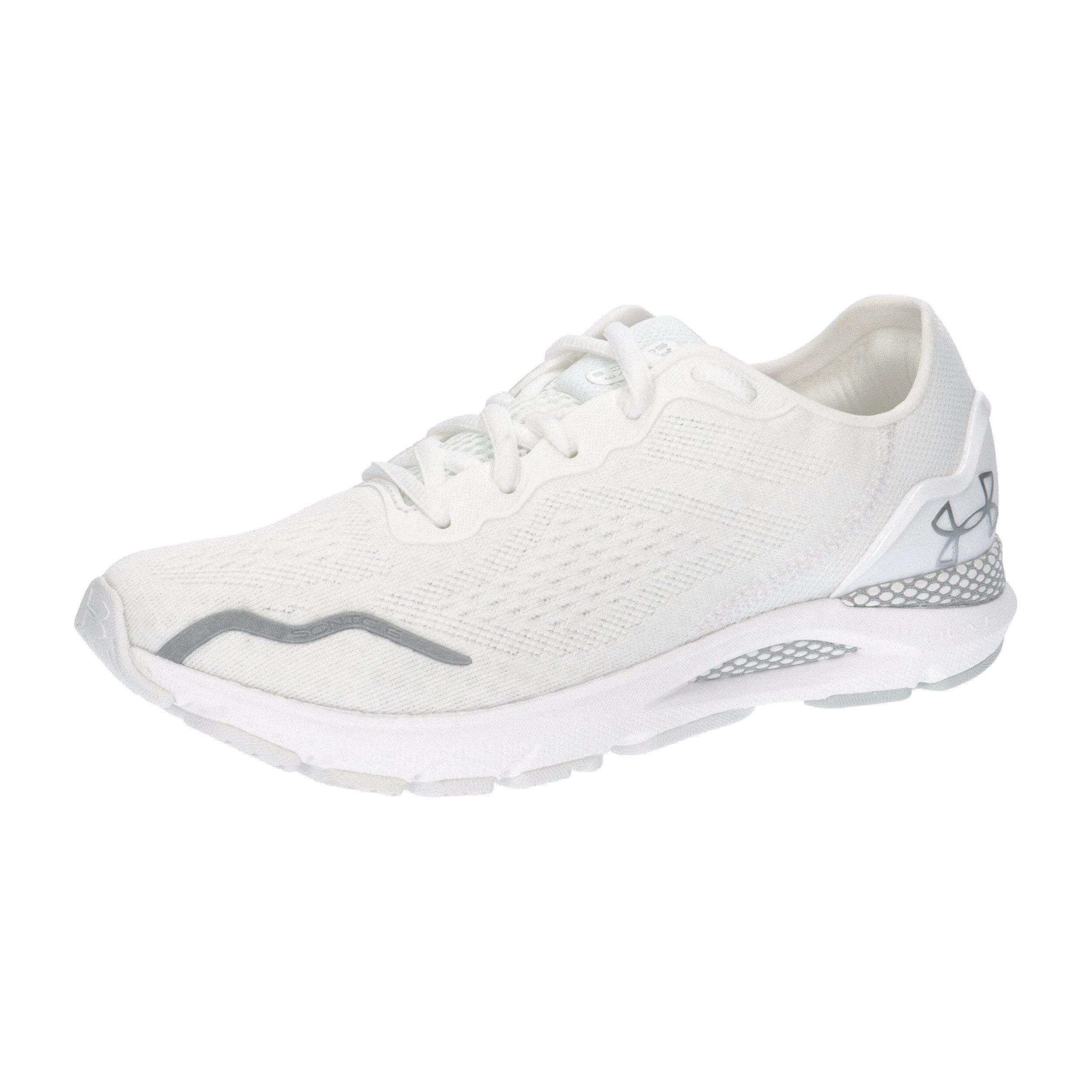 Under Armour Damen Laufschuhe W HOVR Sonic 6. Mit diesem leichten und stützenden Modell hält dich nichts zurück, wenn der Startschuss fällt. Dank der weichen, federnden UA HOVR™-Dämpfung läufst du zu neuen Höchstleistungen auf. Geeignet für: Regelmäßiges Laufen mit leichtem Gefühl. Obermaterial aus Mesh mit nahtlosem Vorderfuß für Komfort und Atmungsaktivität. Äußere Fersenkappe für leichte Struktur und zusätzlichen Halt. Die 3-D-geformte Einlegesohle stützt den Fuß bei jedem Schritt besonders gut. Die reaktive Under Armour HOVR™-Dämpfung verringert die Stoßbelastung, gibt Energie zurück und verleiht Antrieb. Kombination aus Karbongummi und aufgeschäumtem Gummi in der Außensohle für strategische Robustheit und leichtes Rückfedern. Überarbeitete Außensohle bietet Flexibilität an den entscheidenden Stellen und sorgt für ein sanftes Auftreten. Obermaterial: Sonstiges Material;Textil. Futter und Decksohle: Textil. Laufsohle: Sonstiges Material.