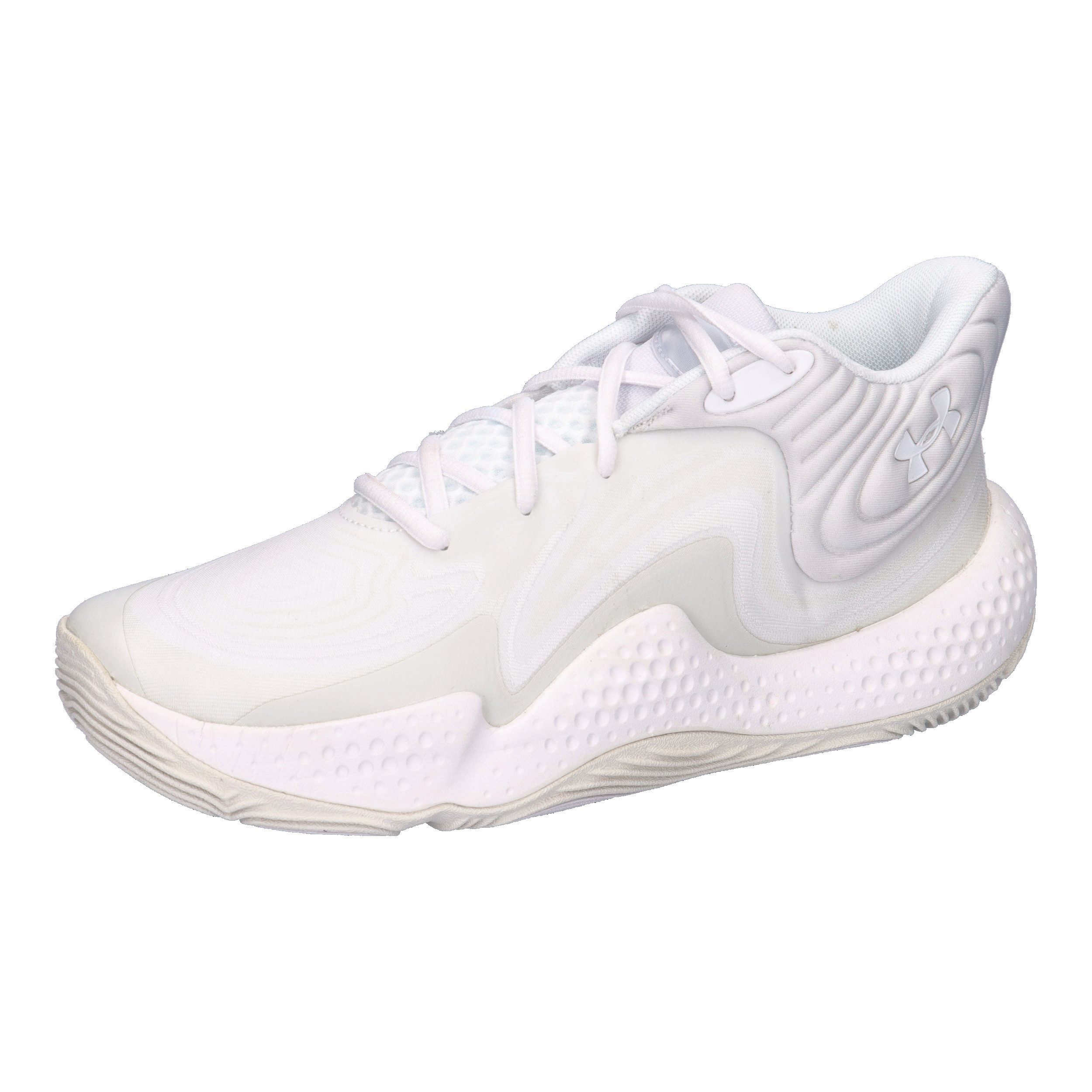 Under Armour Unisex Basketballschuhe Spawn 6 Mid. Ob Asphalt oder Parkett – mit dem Spawn 6 meisterst du Tagesturniere, Play-offs und alles dazwischen. Dieser Schuh ist leicht, atmungsaktiv und robust genug, um jeden Platz zu beherrschen. Leichtes, atmungsaktives Spezialobermaterial aus Mesh mit TPU-Überzügen für zusätzliche Strapazierfähigkeit und mehr Halt. Die geformte Halbstiefel-Ferse aus Textil unterstützt den Knöchel und gibt der Ferse Halt. Die offenzellige Einlegesohle bereitet ultimativen Komfort ab dem ersten Schritt. Die Under Armour Micro G®-Mittelsohle bietet einen reaktionsschnellen Lauf sowie vollständige Kontrolle auf dem Platz. Abgerundete Außensohle ermöglicht schnellere Bewegungen auf dem Spielfeld und adaptive Traktionsmuster verbessern den Halt. Gewicht: 388 g. Obermaterial: Textil, Sonstiges Material. Futter und Decksohle: Textil. Laufsohle: Sonstiges Material.