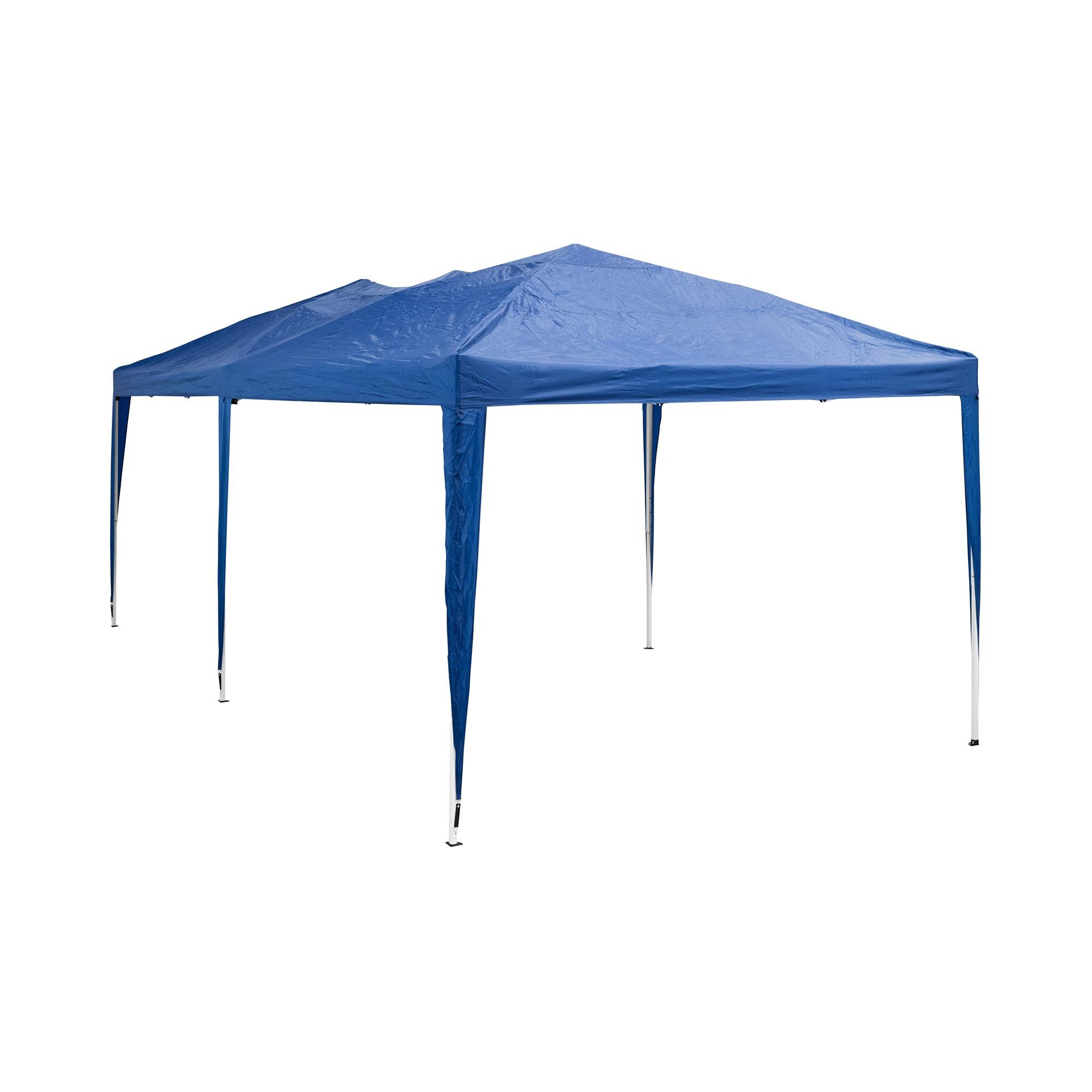 Die hochwertige Plane des Daches aus 210D Oxford-Gewebe ist mit einer wasserdichten Beschichtung versehen, die Regen zuverlässig abhält. Zudem ist das Material UV-beständig und somit äußerst langlebig. Ebenso robust und für den Außenbereich geeignet sind die korrosionsbeständig pulverbeschichteten Stahlrohre des Rahmens. Mit einer Fläche von 2,95 x 5,85 m bietet der Gartenpavillon reichlich Platz für bis zu 10 Personen.