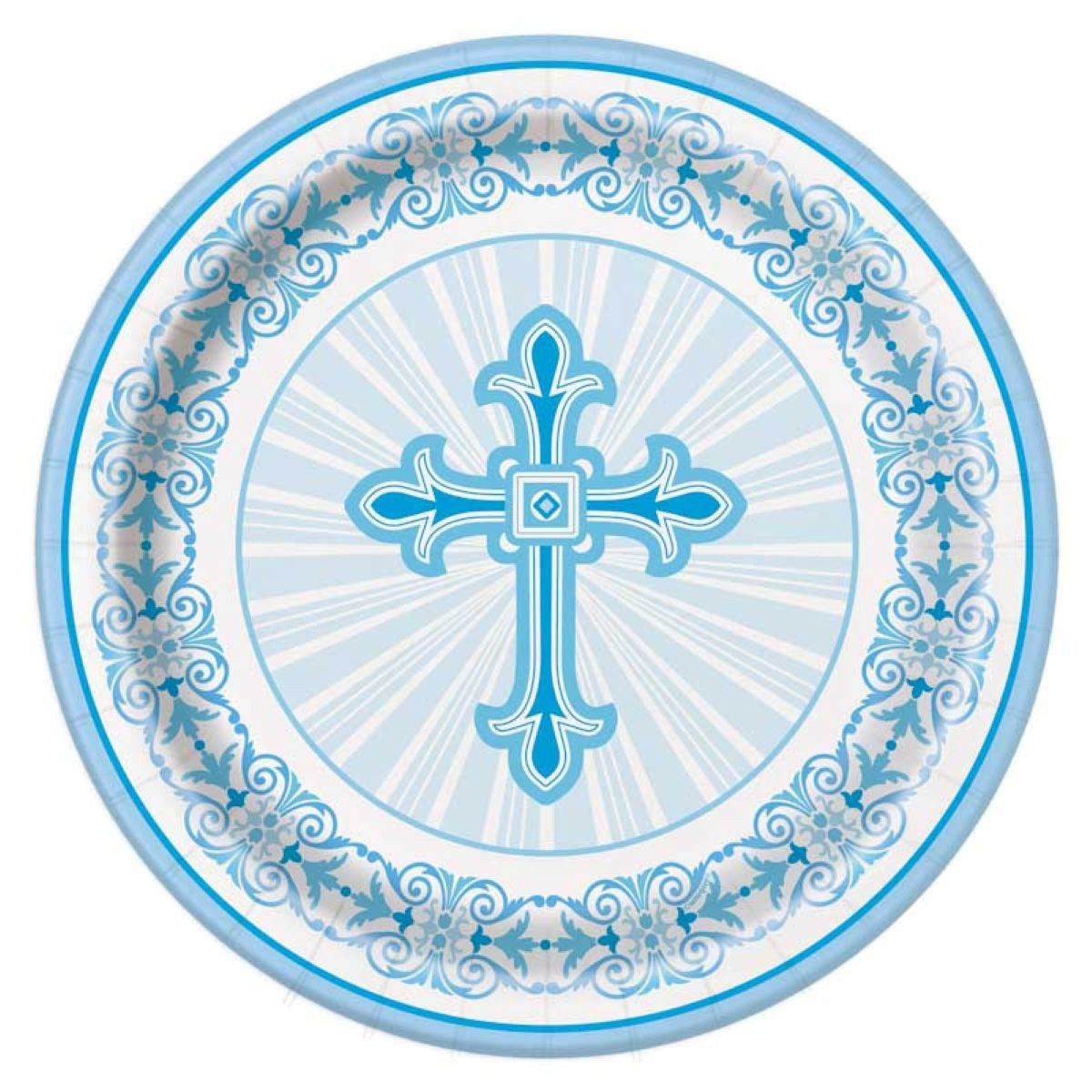 Unique Industries Inc. Pappteller Pappteller 'Kreuz Blau', Ø23cm/8Stk.