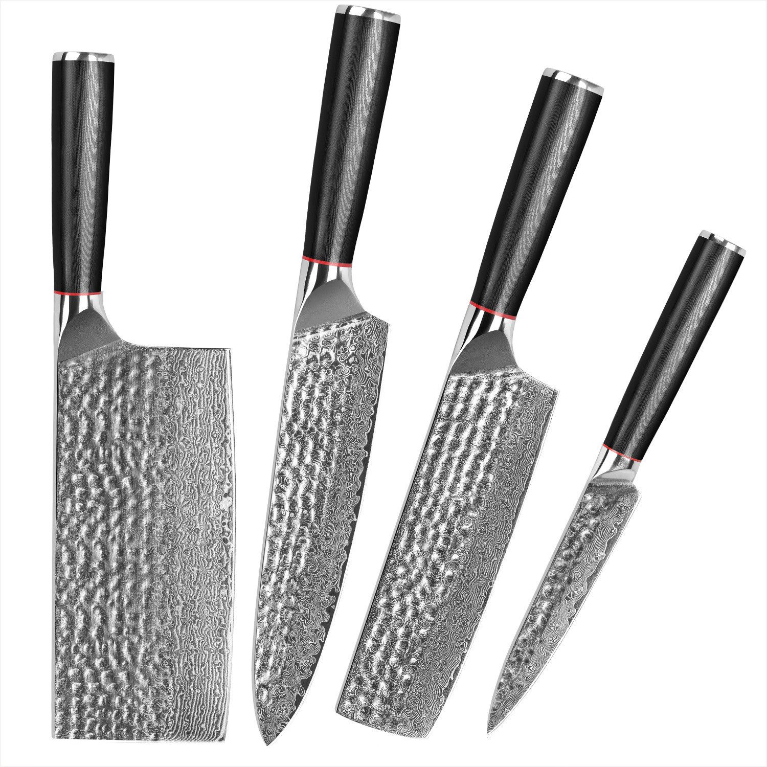 Hergestellt aus 67 Schichten kohlenstoffreichen Damaststahl, der durch Vakuumwärmebehandlung gewonnen wird, kann seine Rockwell-Härte 62HRC erreichen und bietet eine haltbarere Schneidkante. Es bietet außerdem eine hohe Beständigkeit gegen Korrosion, Rost und hat eine Zähigkeit, die der des japanischen VG10-Stahls entspricht.