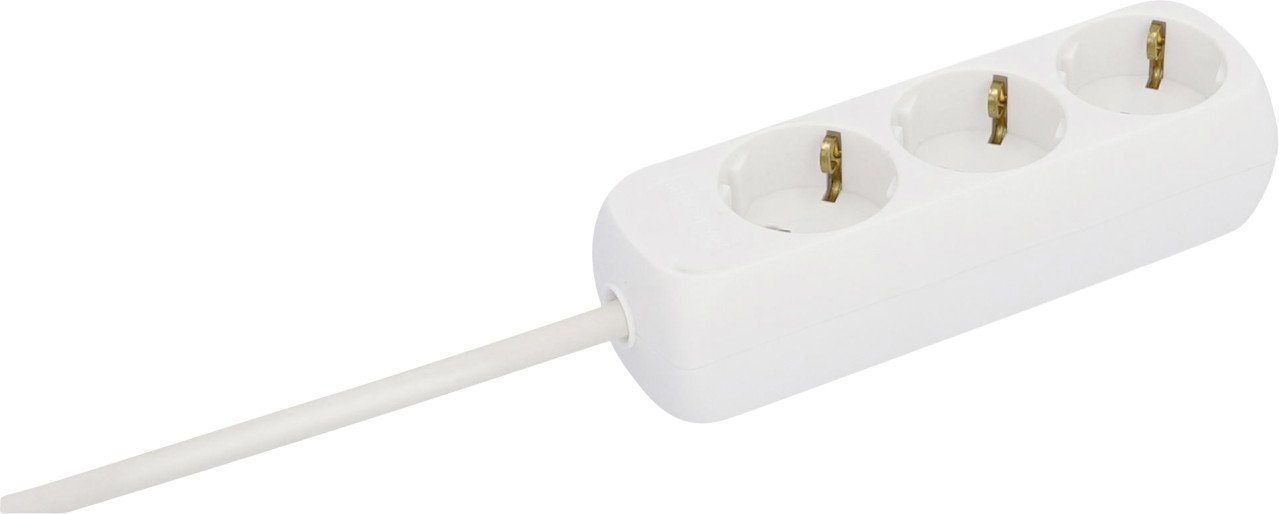 Produktdetails: Mit integrierter Berührungsschutz | Kabellänge: 3 m | max. Anschlussleistung: 3.500 W | Steckdosen im 45° - Winkel angeordnet | Kabel: H05VV-F 3G1,5 mm² | Farbe: weiß | 3er Steckdosenleiste | Nennspannung: 250 V~ | Nennstrom: 16 A | nur zur Verwendung im Innenbereich (nicht wassergeschützt) |