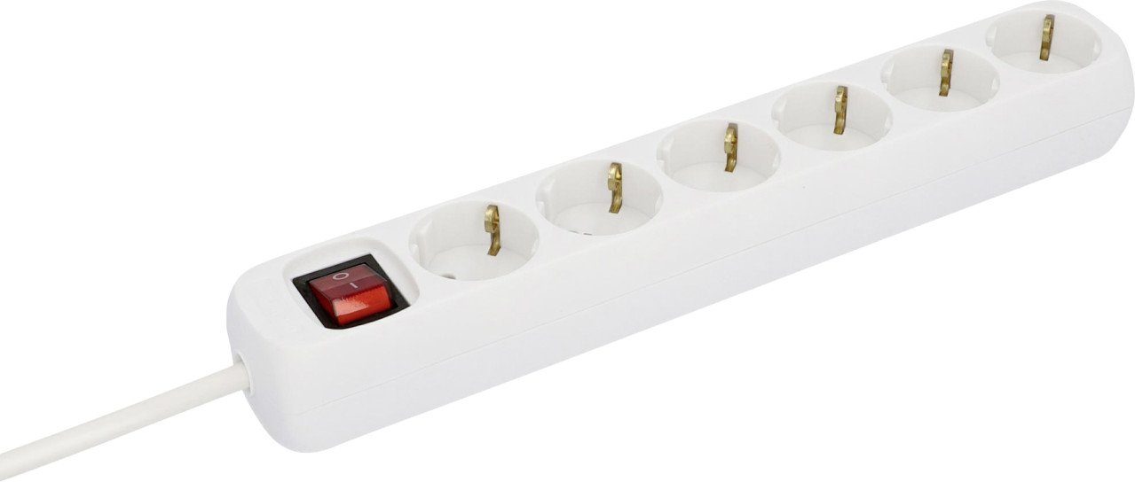 Produktdetails: Mit integrierter Berührungsschutz | Kabellänge: 1,4 m | max. Anschlussleistung: 3.500 W | Steckdosen im 45° - Winkel angeordnet | Kabel: H05VV-F 3G1,5 mm² | mit beleuchtetem Ein-/Ausschalter | Farbe: weiß | Steckdosenleiste 6-fach | Nennspannung: 250 V~ | Nennstrom: 16 A | nur zur Verwendung im Innenbereich (nicht wassergeschützt) |