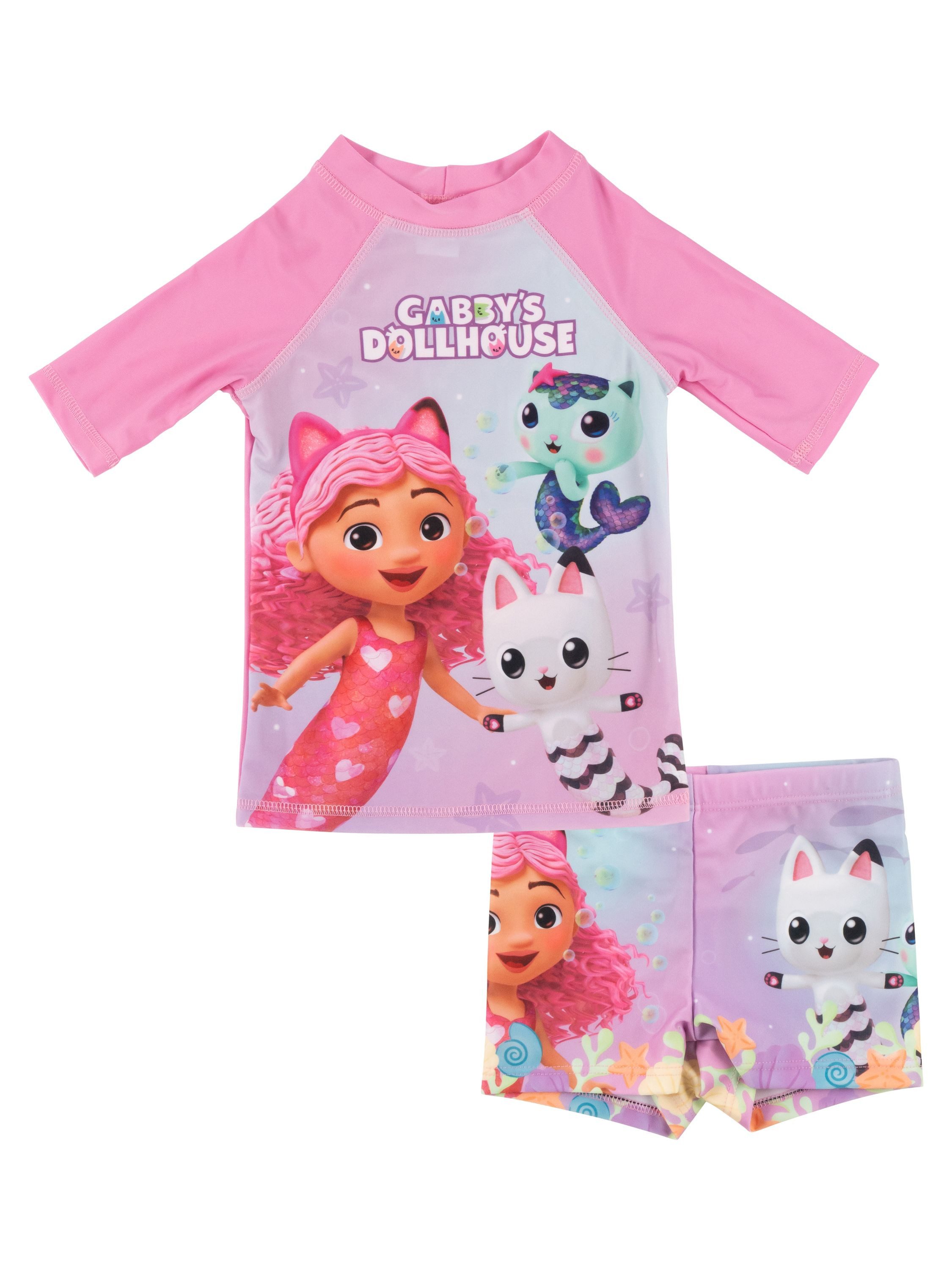 Gabby's Dollhouse Schwimmset UV-Schutz 30 für Mädchen - Kinder Badeanzug Badeset Shirt und Hose Zweiteiler Rosa
