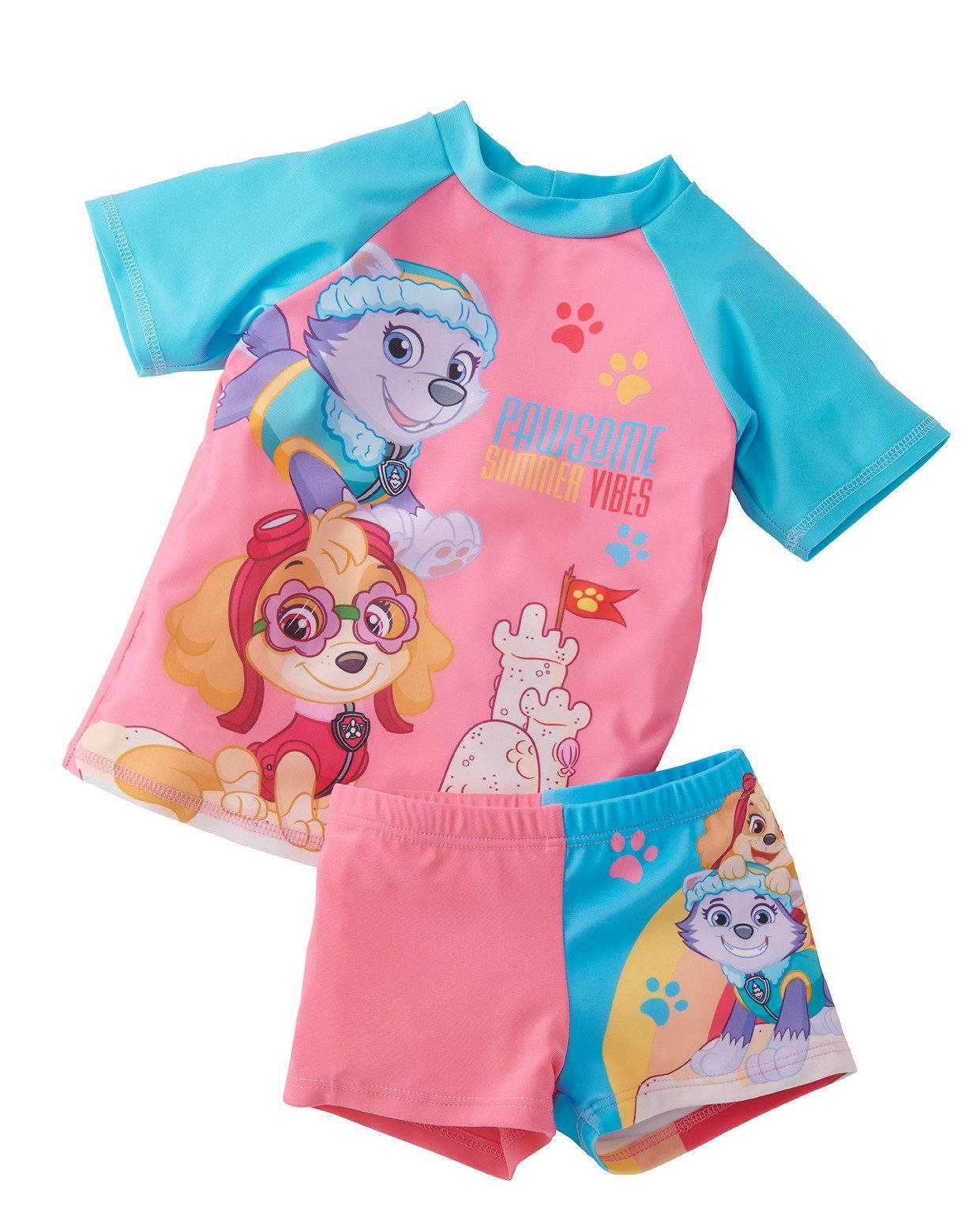 Paw Patrol Schwimmset UV-Schutz 50+ für Mädchen - Kinder Badeanzug Set Oberteil und Hose Zweiteiler Rosa