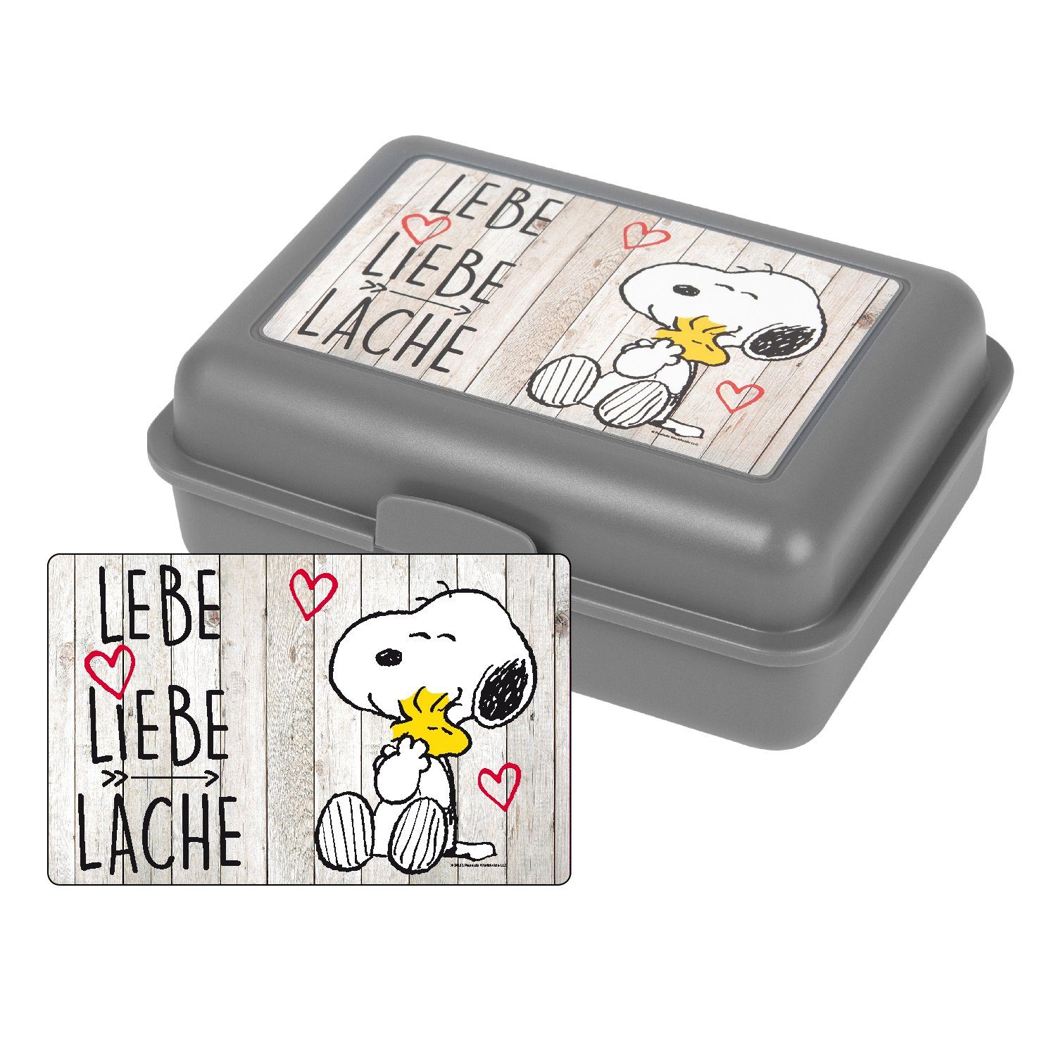 The Peanuts Brotdose Snoopy - Lebe Liebe Lache Lunchbox Butterbrotdose mit Trennwand Grau