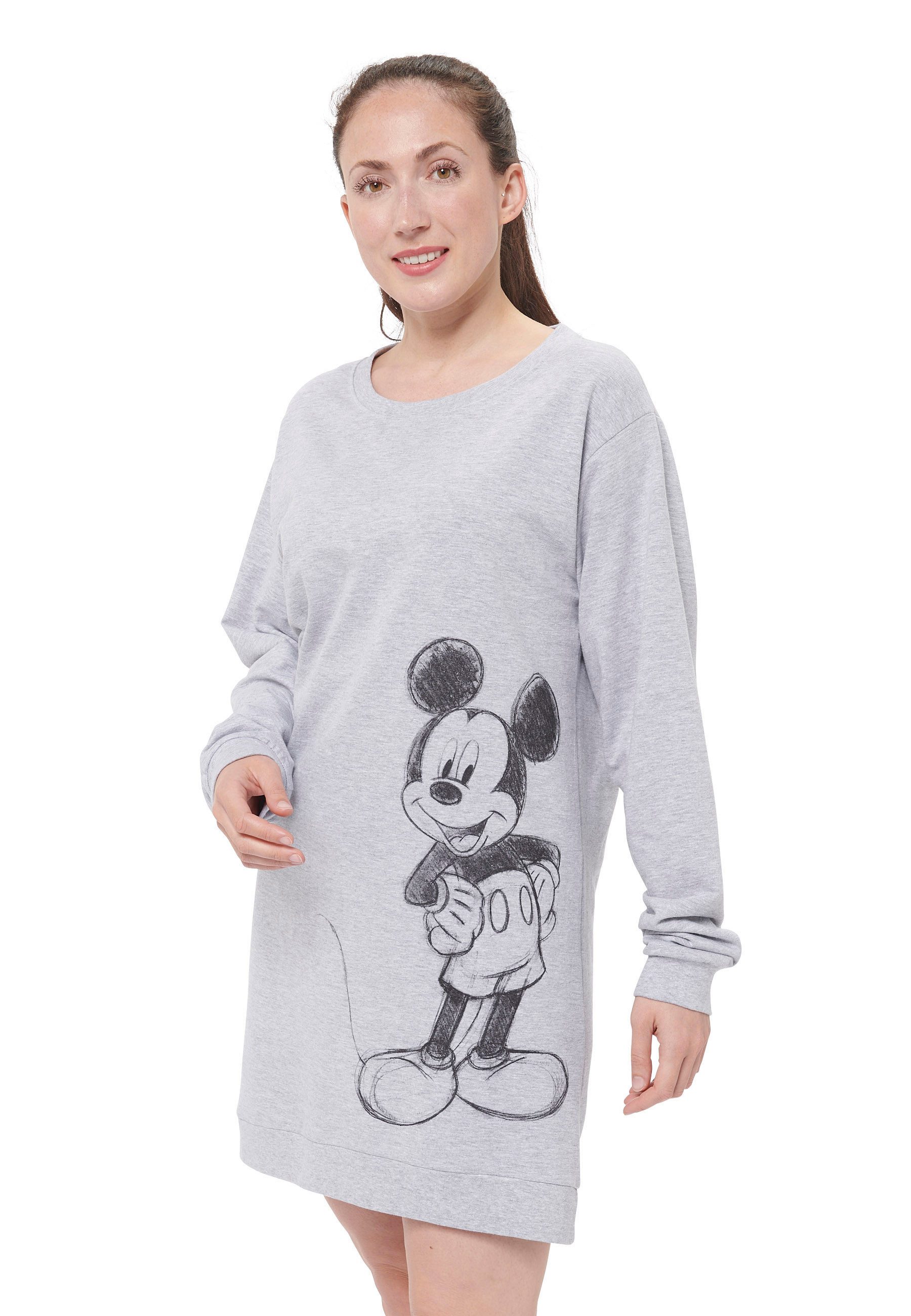 Disney Mickey Mouse Nachthemd für Damen Schlafshirt Pyjama langärmlig lange Ärmel Oberteil Grau