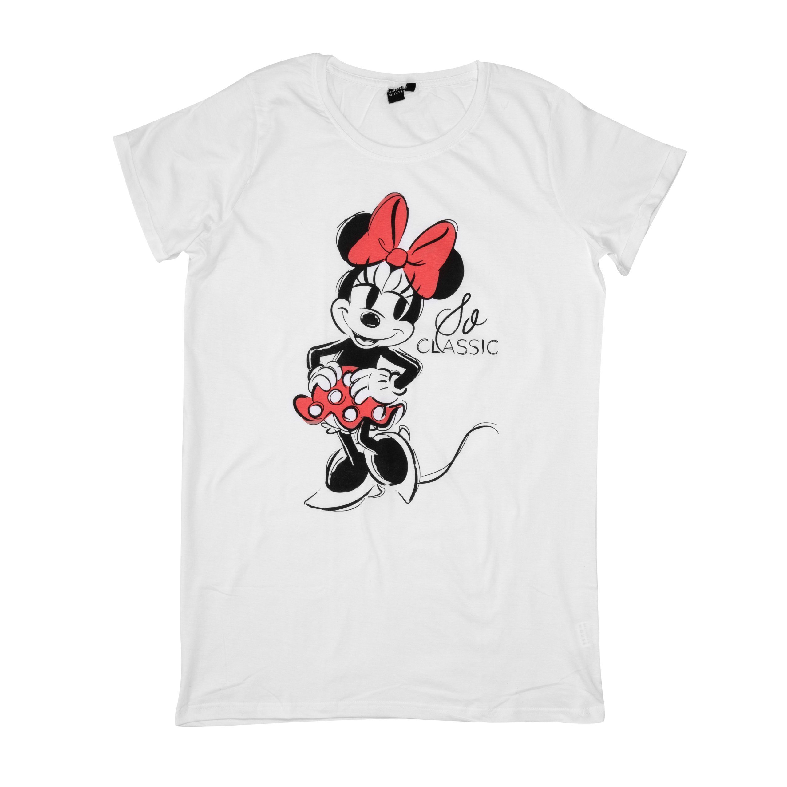Disney Minnie Mouse Nachthemd für Damen Schlafshirt Pyjama kurzärmlig Oberteil Weiß