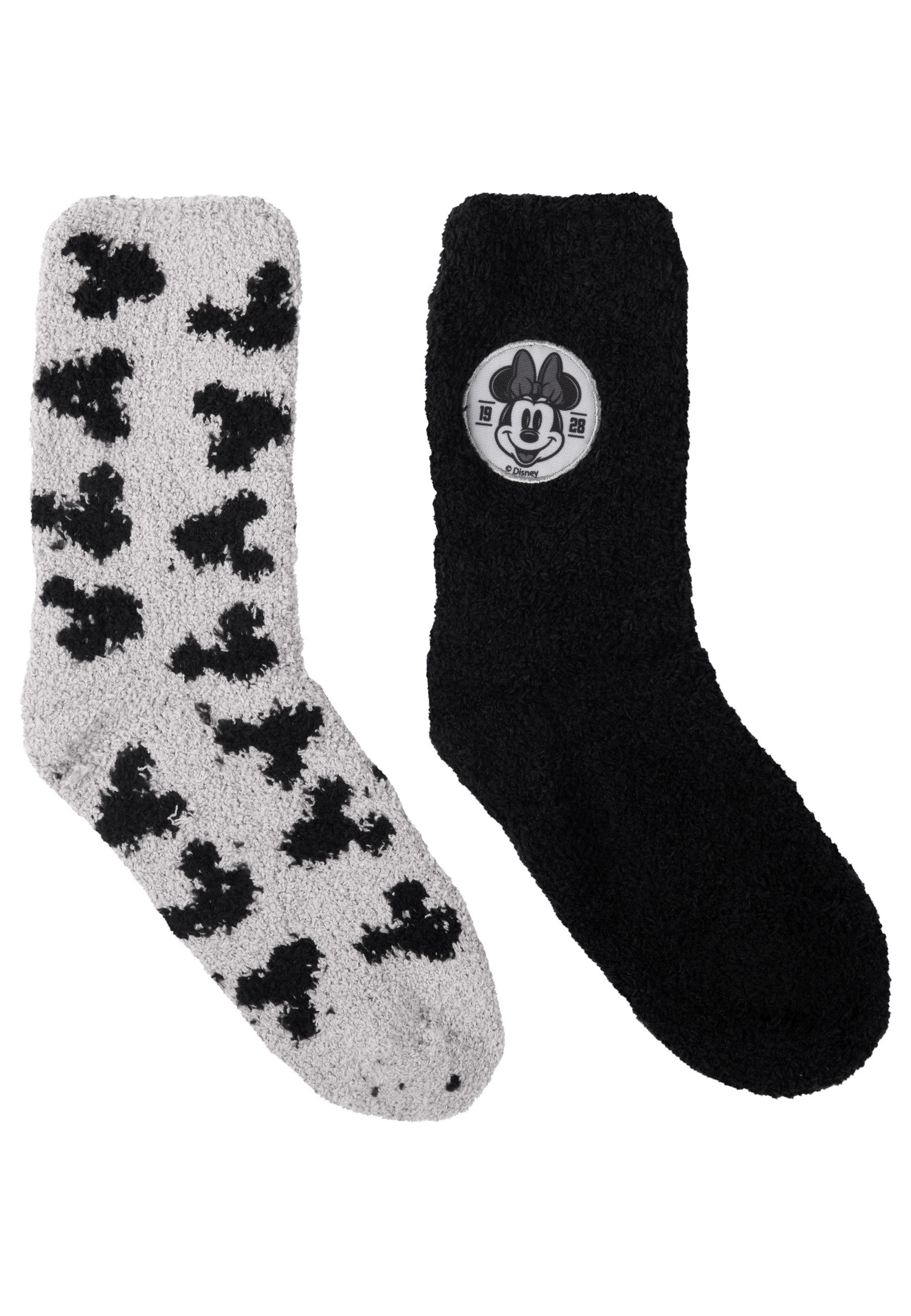 Disney Minnie Mouse Kuschelsocken für Damen - Flauschige Wintersocken warme Socken Grau/Schwarz (2er Pack)
