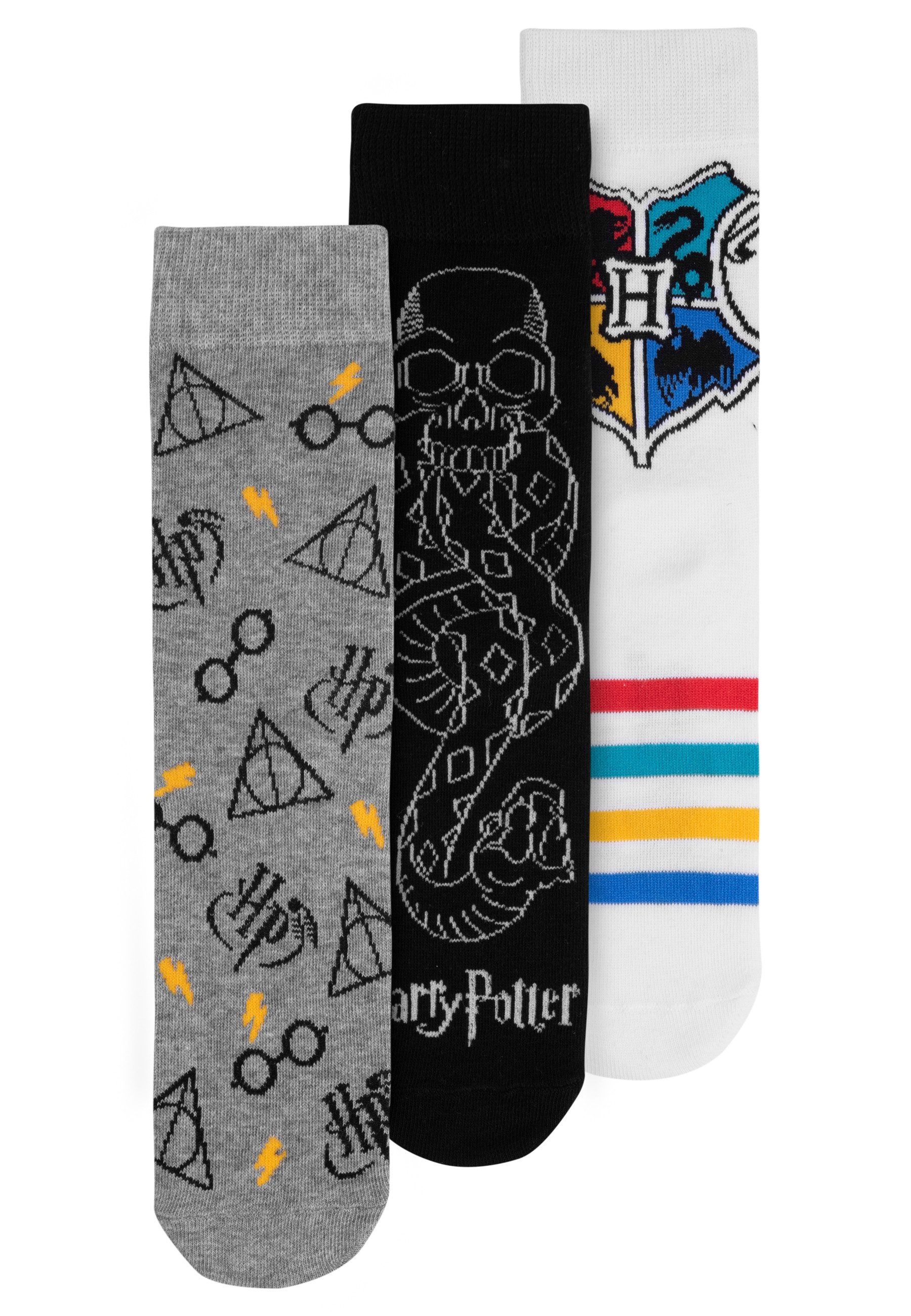 Harry Potter Socken für Herren - Hogwarts Männer Sneaker Strümpfe (3er Pack)