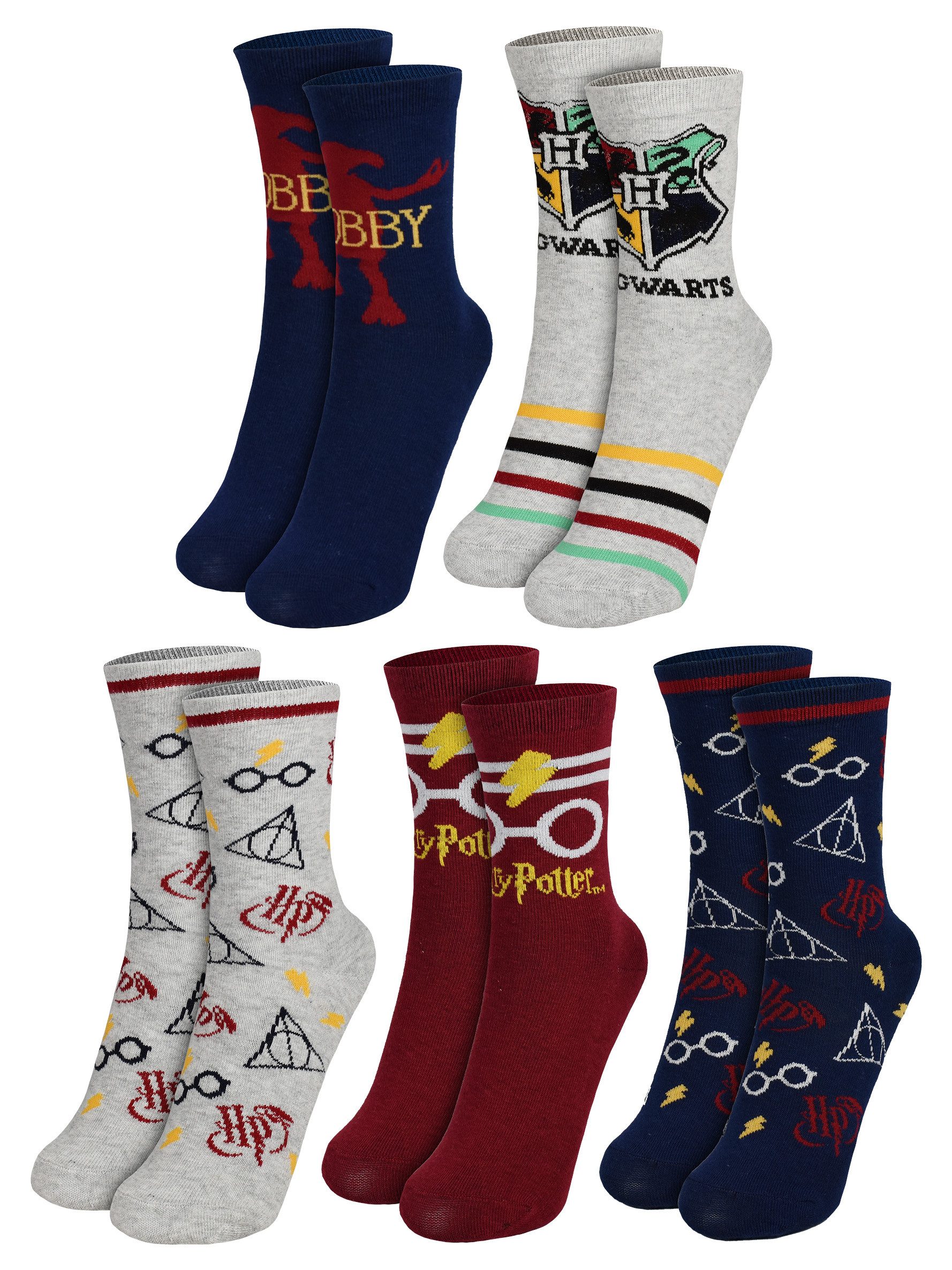 Harry Potter Socken für Jungen und Mädchen - Hogwarts Kinder Sneaker Kindersocken Söckchen Grau/Blau/Rot (5er Pack)