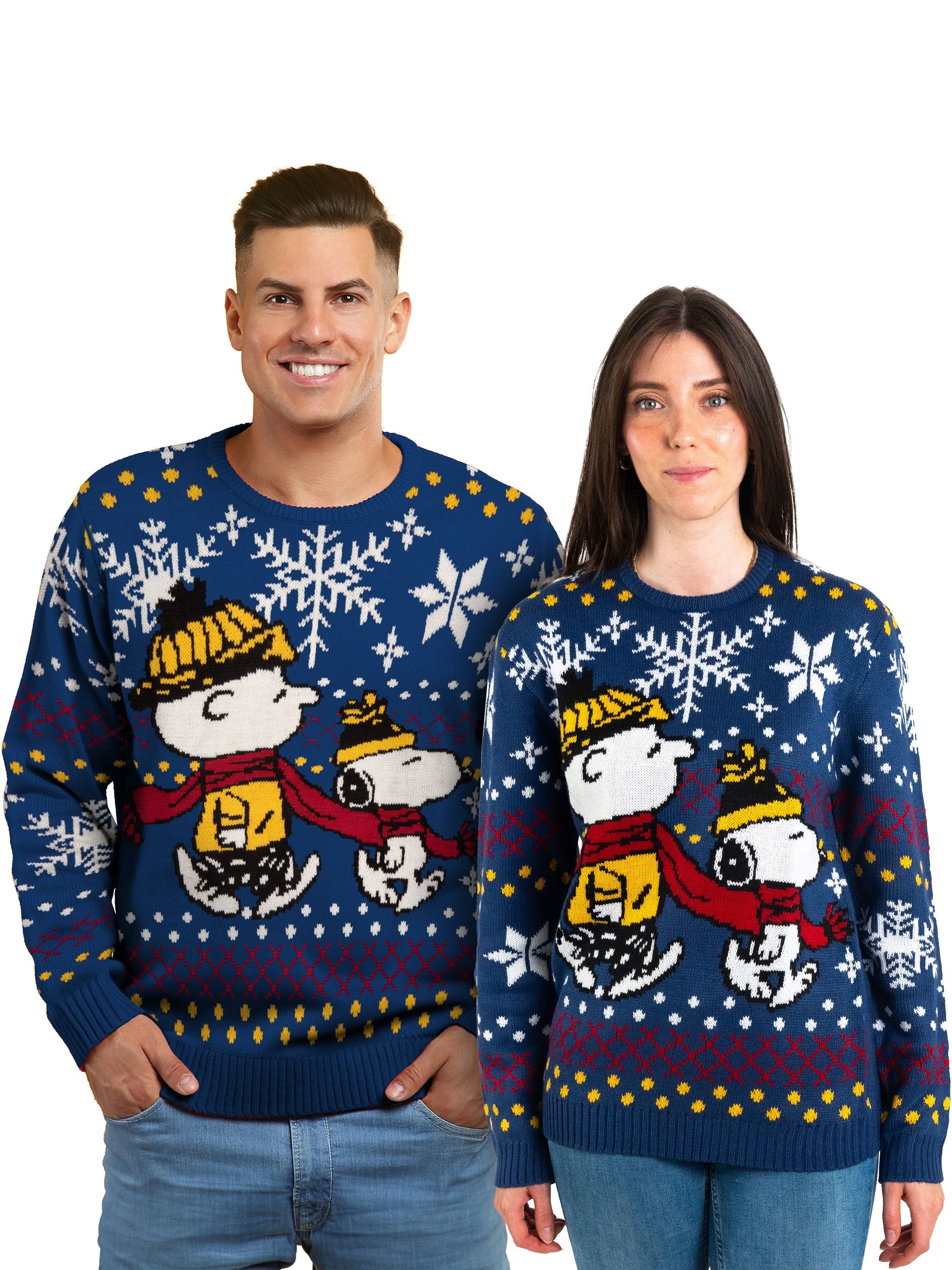 The Peanuts Snoopy Winterpullover Unisex - Winter Strick Pullover Sweatshirt Ugly Sweater für Herren & Damen Blau
