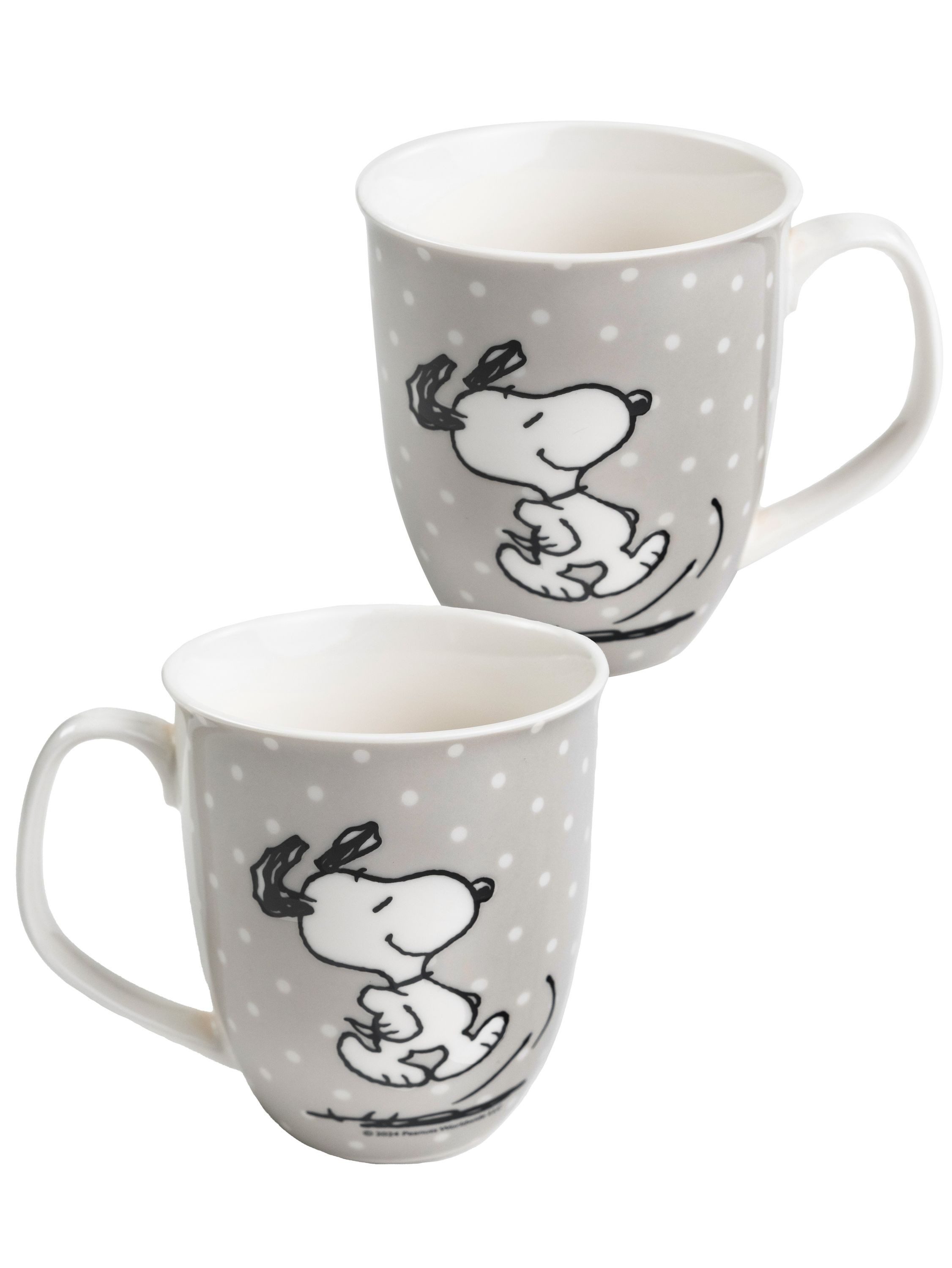 The Peanuts Snoopy Tasse - Kaffeetasse Becher Kaffeebecher aus Keramik Grau mit Punkten 280 ml