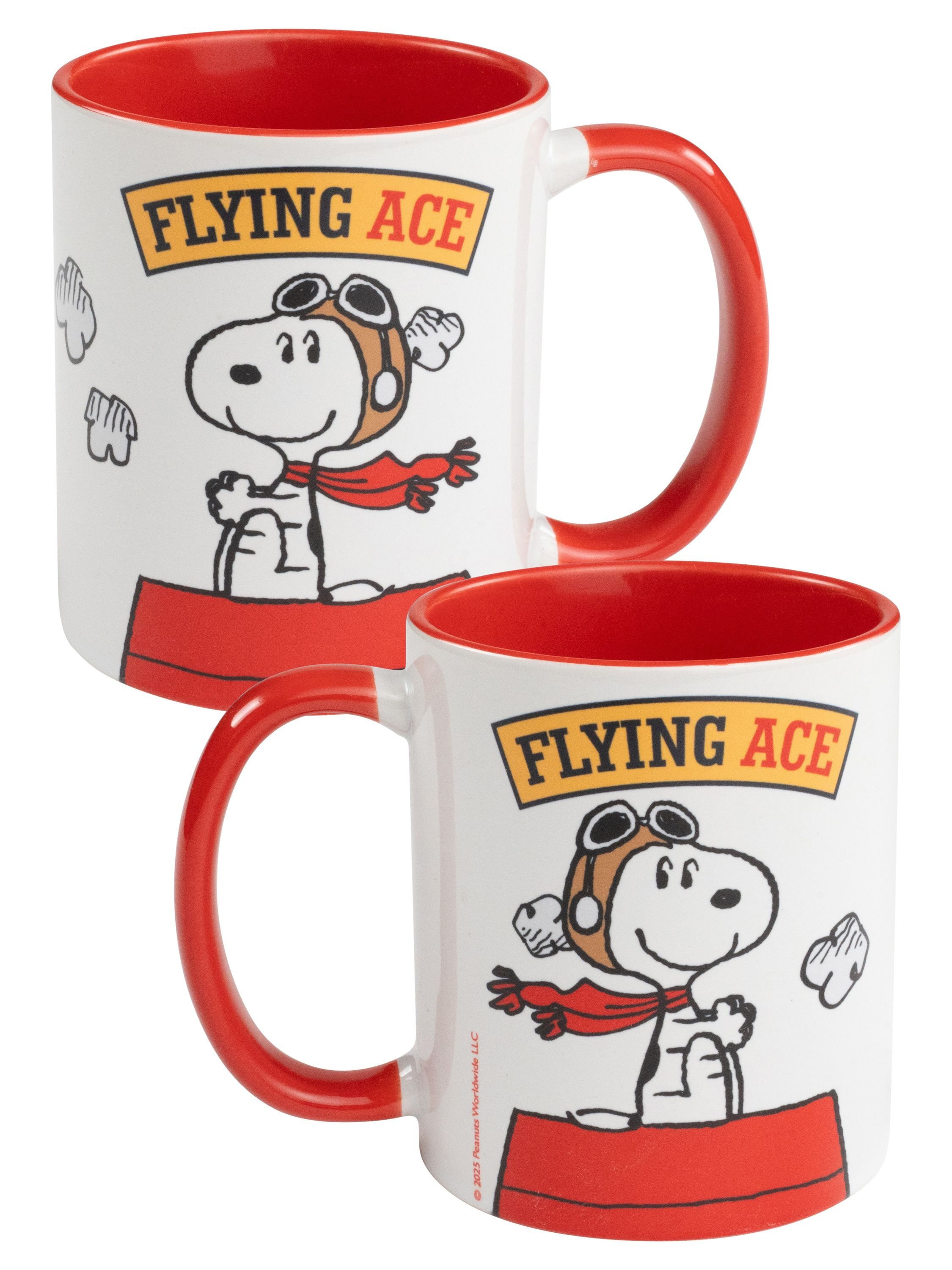 The Peanuts Snoopy Tasse - Flying Ace Kaffeetasse Becher Kaffeebecher aus Keramik 320 ml Rot/Weiß
