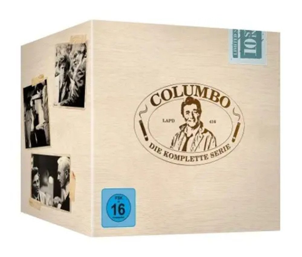 Seine Markenzeichen: ein zerknitterter Trenchcoat, ein schrottreifes Auto, eine Zigarre und - die berühmte letzte Frage ... Wenn Inspektor Columbo einen Tatort betritt, ist nur eines sicher: großartige Fernsehunterhaltung! An dieser hochwertigen Special Edition kommt kein Fan vorbei - und wer Columbo bis jetzt noch nicht erleben durfte, der kann sicher sein, dass der spleenige Inspektor dazu eine Frage gehabt hätte. STAFFEL 1 - Tödliche Trennung - Mord mit der linken Hand - Mord unter sechs Augen - Mord in Pastell - Schritte aus dem Schatten - Zigarren für den Chef - Ein Denkmal für die Ewigkeit - Mord nach Rezept - Lösegeld für einen Toten STAFFEL 2 - Etude in schwarz - Blumen des Bösen - Wenn der Eismann kommt - Alter schützt vor Torheit nicht - Klatsch kann tödlich sein - Zwei Leben an einem Faden - Schach dem Mörder - Doppelter Schlag STAFFEL 3 - Ein Hauch von Mord - Wein ist dicker als Blut - Stirb für mich - Ein gründlich motivierter Tod (Ein zu perfektes Alibi) - Schreib oder stirb - Teuflische Intelligenz - Schwanengesang - Meine Tote - Deine Tote STAFFEL 4 - Geld, Macht und Muskeln - Momentaufnahme für die Ewigkeit - Des Teufels Corporal - Traumschiff des Todes - Playback - Der Schlaf, der nie endet STAFFEL 5 - Tödliches Comeback - Mord in der Botschaft - Tod am Strand - Blutroter Staub - Wenn der Schein trügt - Der alte Mann und der Tod STAFFEL 6 & 7 - Mord im Bistro - Bei Einbruch Mord - Todessymphonie - Alter schützt vor Morden nicht - Mord à la Carte - Mord per Telefon - Mord in eigener Regie - Waffen des Bösen STAFFEL 8 - Tödliche Tricks - Der vergessene Tote - Black Lady - Tödliche Kriegsspiele - Selbstbildnis eines Mörders - Wer zuletzt lacht ... STAFFEL 9 - Mord nach Termin - Ruhe sanft, Mrs. Columbo - Schleichendes Gift - Niemand stirbt zweimal - Luzifers Schüler - Der erste und der letzte Mord - Tödliche Liebe - Tödlicher Jackpot - Bluthochzeit - Ein Spatz in der...